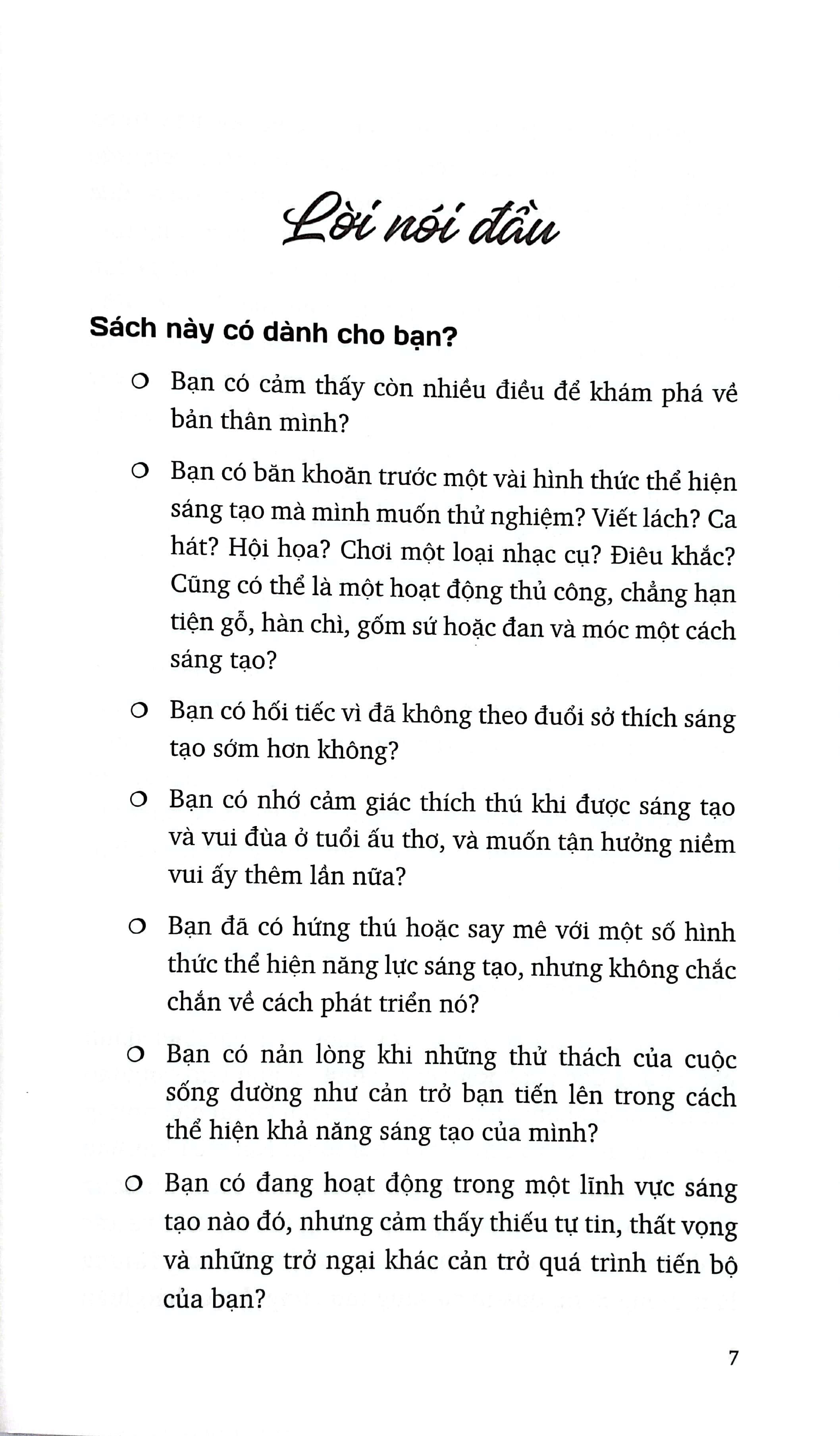 Đây thực sự là cuốn sách dành cho tất cả mọi người. Mỗi chương sẽ cho bạn thấy các chiến lược đơn giản để nhận diện và nuôi dưỡng những kỹ năng sáng tạo của m.ình. Quan trọng hơn là, sách hướng dẫn các kỹ năng sống một cách đơn giản và thực tế, giúp hành trình của bạn trở nên thú vị hơn.