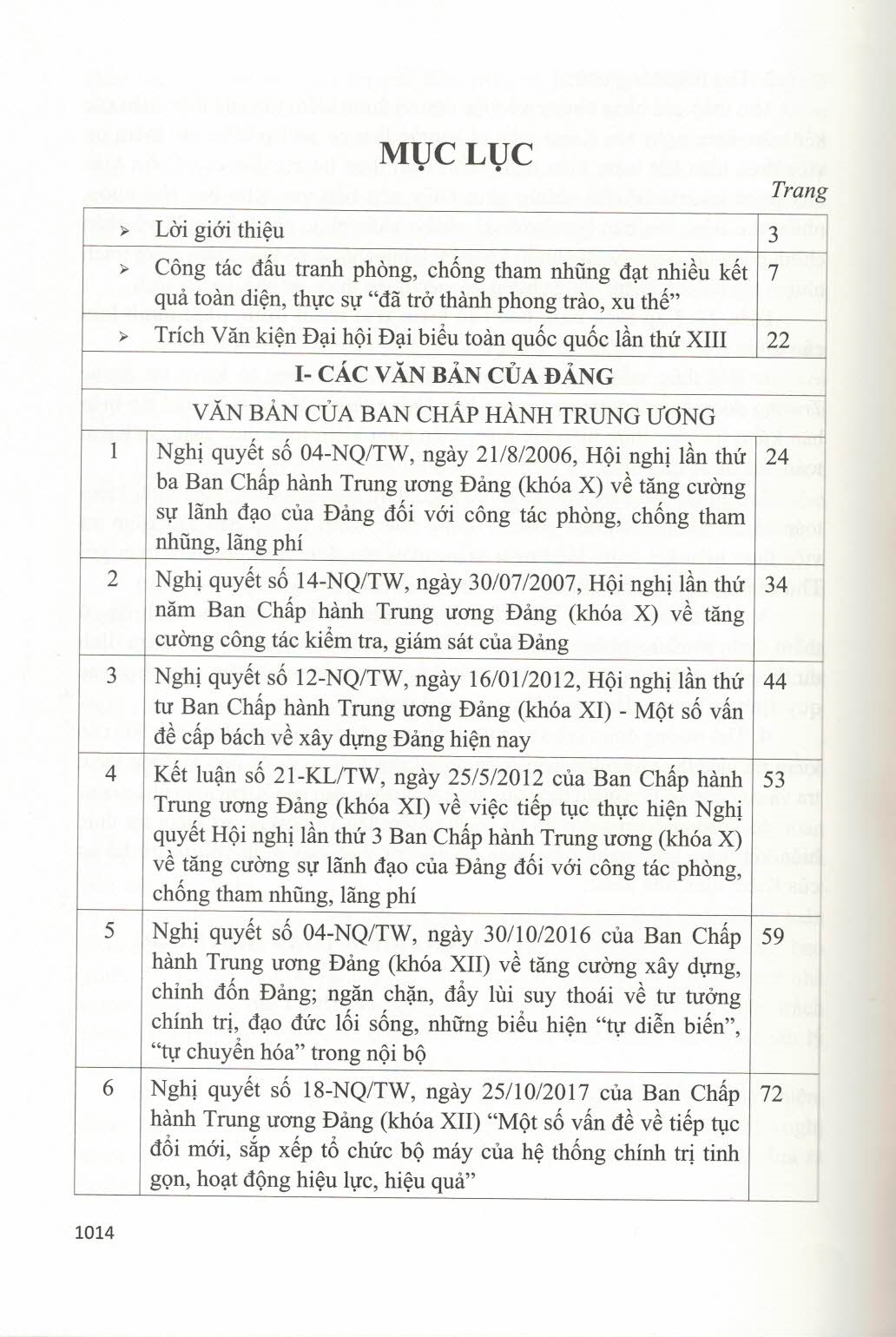 Để thực hiện nhiệm vụ, giải pháp phòng, chống tham nhũng, tiêu cực, cần tăng cường và đa dạng hóa công tác thông tin, tuyên truyền về chủ trương, quy định của Đảng, cơ chế, chính sách, pháp luật của Nhà nước về phòng, chống tham nhũng. "Hệ thống các văn bản của Đảng và Nhà nước về công tác phòng, chống tham nhũng, tiêu cực" là một tài liệu tham khảo hữu ích trong công tác thực hiện nhiệm vụ phòng, chống tham nhũng, tiêu cực, trình bày các văn bản của Đảng, cũng như các văn bản quy phạm pháp luật một cách hệ thống, dễ tra cứu.