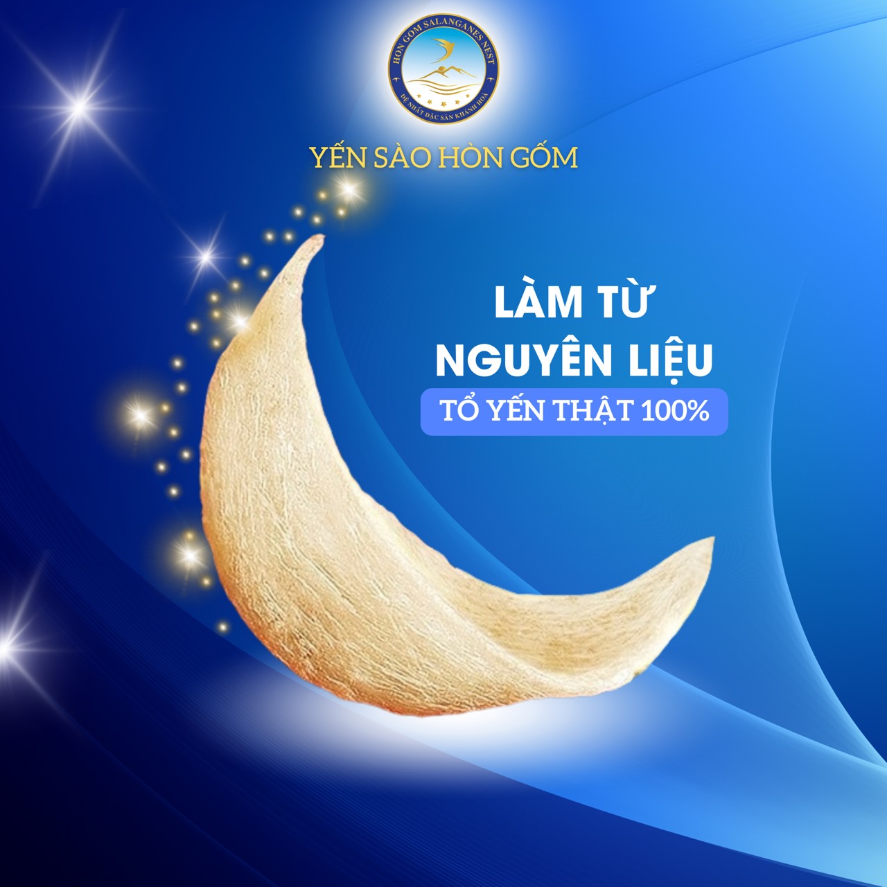 YẾN SÀO THÔ NGUYÊN TỔ CAO CẤP (HGK-T1) - CHẤT LƯỢNG TỪ YẾN SÀO HÒN GỐM KHÁNH HÒA Top 10 Giải thưởng Sao Vàng Thương Hiệu Quốc Gia 2024 Đặc điểm nổi bật của sản phẩm   Loại yến: Yến thô trắng, tổ yến sạch tự nhiên, form tổ đẹp, 9-10 tổ/100g. Quy cách đóng gói: Hộp 10g, 20g, 30g, 50g, 100g, hoặc hộp quà tặng nam châm cao cấp. Tặng kèm: Táo đỏ, đường phèn, hạt chia hỗ trợ chưng yến dễ dàng.   Nguồn gốc & quy trình sản xuất   Xuất xứ: Từ vùng nguyên liệu trên địa bàn tỉnh Khánh Hòa, nơi nổi tiếng với yến sào chất lượng cao. Quy trình: • Tổ yến được khai thác thủ công từ thiên nhiên. • Không sử dụng hóa chất trong quá trình xử lý, đảm bảo giữ nguyên độ tinh khiết và dinh dưỡng.   Công dụng của Yến Sào Thô Nguyên Tổ Cao Cấp T1   Tăng cường sức khỏe: Bổ sung dưỡng chất cần thiết, giúp cơ thể khỏe mạnh, dẻo dai. Cải thiện sắc đẹp: Tăng cường collagen, giúp da sáng khỏe và ngăn ngừa lão hóa. Bồi bổ cơ thể: Phục hồi nhanh cho người mới ốm dậy, phụ nữ mang thai, người cao tuổi. Hỗ trợ trí não: Phát triển trí não cho trẻ nhỏ và giảm stress cho người làm việc căng thẳng.   Hướng dẫn sử dụng