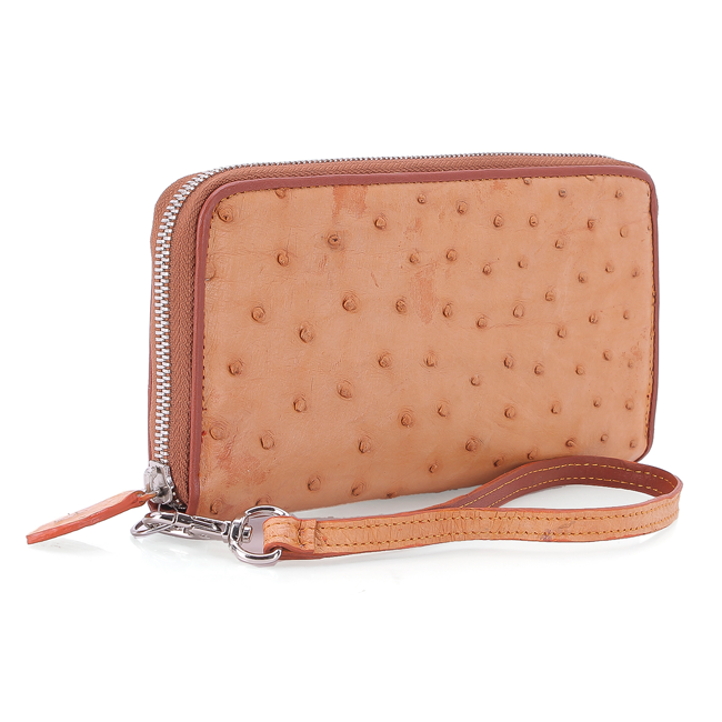 Bóp/Ví da đà điểu Huy Hoàng da bụng kiểu đứng màu nâu đất, nâu đỏ, đen, vàng bò 2408-09-10-18