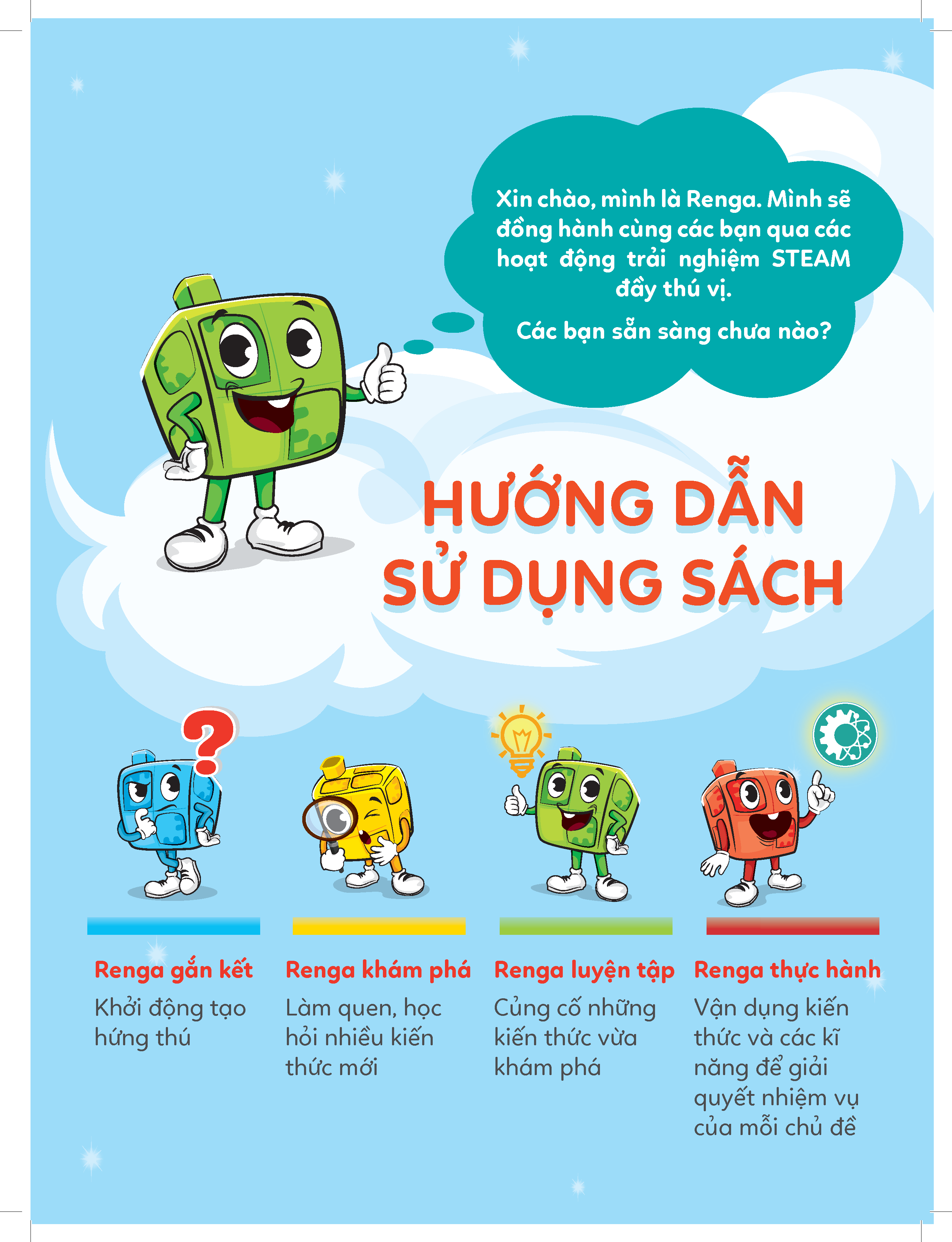 Hoạt động trải nghiệm Steam, Khám phá - thực hành - sáng tạo (dành cho trẻ mầm non 4-6 tuổi) được biên soạn dựa trên định hướng chương trình Giáo dục Mầm non của Bộ Giáo dục và Đào tạo (đã được sửa đổi bổ sung theo Thông tư số 51/2020/TT-BGDĐT) các tình huống và vấn đề thực tiễn, nhằm khuyến khích trẻ quan sát, đặt câu hỏi, khám phá, từ đó phát triển tư duy logic, sáng tạo, và chủ động giải quyết vấn đề.   Bên cạnh đó, chương trình Hoạt động trải nghiệm STEAM chú trọng vào việc nuôi dưỡng tinh thần, tình cảm, và trí tuệ của trẻ một cách toàn diện. Thông qua các câu chuyện và tình huống tạo điều kiện cho trẻ thể hiện sự chia sẻ, đồng cảm và giúp đỡ mọi người. Việc phát triển các phẩm chất và kĩ năng cơ bản này sẽ là nền tảng cho trẻ ở các cấp học tiếp theo. Nội dung tài liệu gồm ba phần chính: Dự án Khoa học, Xếp hình Sáng tạo, và Lập trình robot. Mỗi phần đều được thiết kế dựa trên các tình huống và vấn đề thực tiễn, nhằm khuyến khích trẻ quan sát, đặt câu hỏi, khám phá, từ đó phát triển tư duy logic, sáng tạo, và chủ động giải quyết vấn đề. Ngoài ra chương trình Hoạt động trải nghiệm STEAM chú trọng việc phát triển các khía cạnh về thể chất, trí tuệ, thẩm mỹ và đặc biệt là tình cảm của trẻ. Thông qua các câu chuyện và tình huống, trẻ được khuyến khích chia sẻ, đồng cảm, hợp tác và hỗ trợ lẫn nhau, từ đó xây dựng các phẩm chất và năng lực cơ bản quan trọng, chuẩn bị cho hành trang của trẻ cho các cấp học tiếp theo.