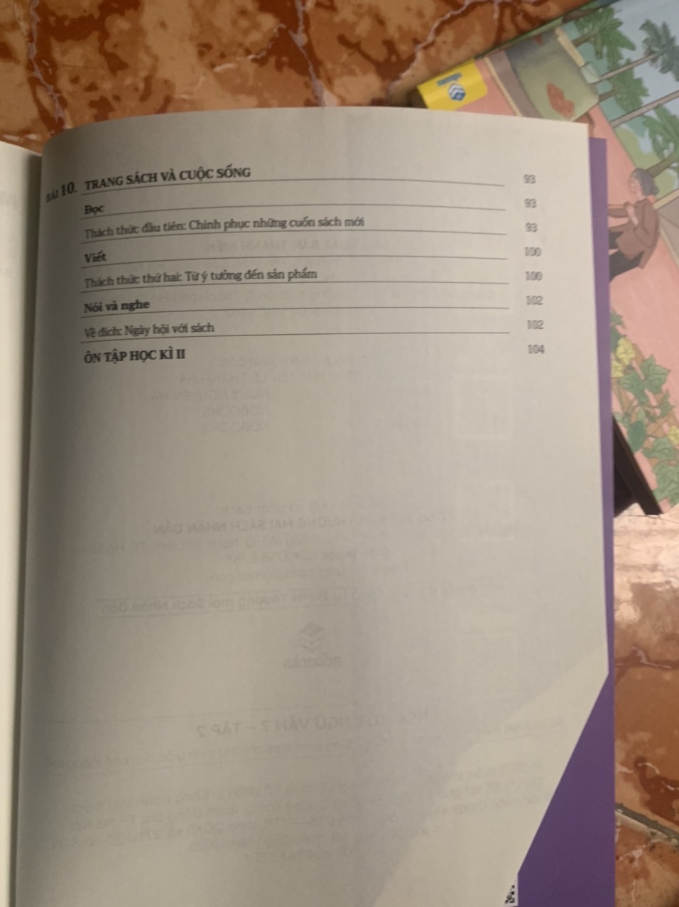 - Hướng dẫn trả lời câu hỏi (ở các văn bản đọc, bao gồm câu hỏi trước khi đọc, trong khi đọc và sau khi đọc), hướng dẫn làm bài tập thực hành tiếng Việt, các bài viết và nói. – Ngoài ra, còn có thêm một số tư liệu tham khảo phục vụ cho quá trình học và làm bài của các em tốt hơn. Hi vọng cuốn sách sẽ là tài liệu bổ ích cho các em trong quá trình khám phá những điều thú vị về kiến thức văn học ở lớp 7 của bậc Trung học cơ sở. MỤC LỤC: Bài 1. BẦU TRỜI TUỔI THƠ Bài 2. KHÚC NHẠC TÂM HỒN Bài 3. CỘI NGUỒN YÊU THƯƠNG Bài 4. GIAI ĐIỆU ĐẤT N.ƯỚC Bài 5. MÀU SẮC TRĂM MIỀN ÔN TẬP HỌC KÌ I
