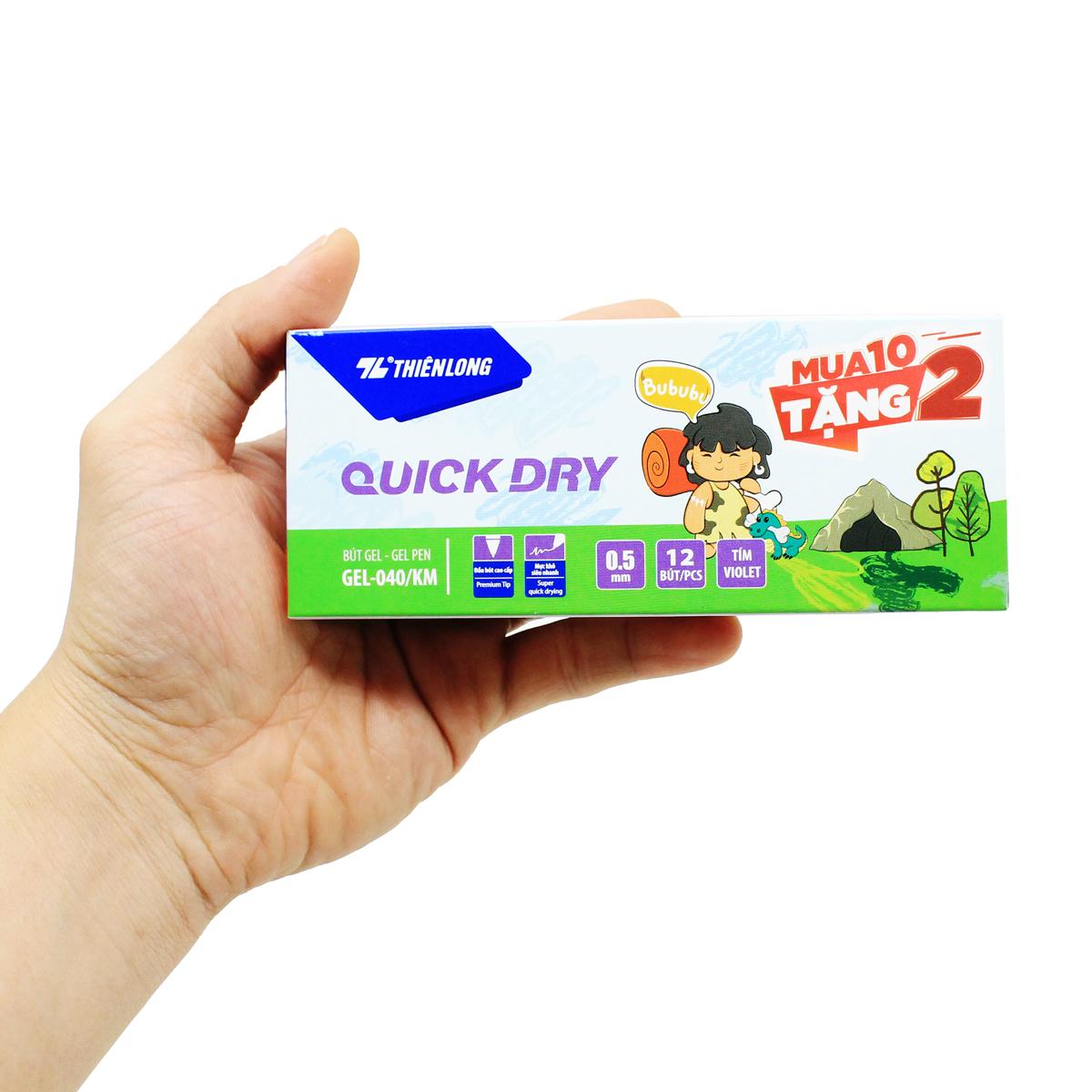 Hộp 12 Bút Gel Quick Dry 0.5 mm - Thiên Long GEL-040/KM - Mực Tím