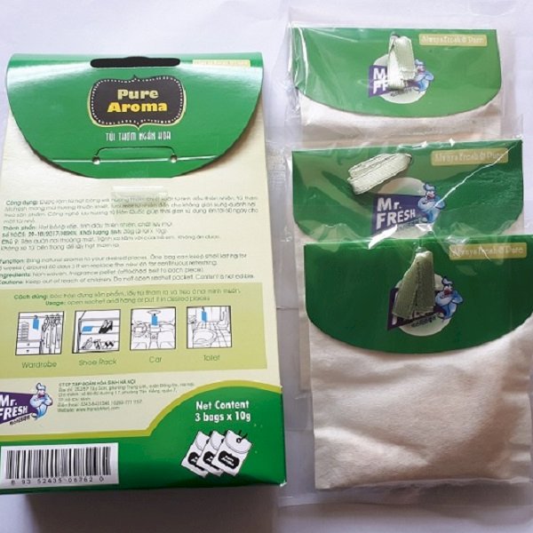 - Túi thơm Mr.Fresh được đóng gói tiện dụng, nhỏ gọn nên dễ dàng mang theo. Sản phẩm có thể dùng trong nhà vệ sinh, tủ quần áo, thư viện, kệ sách... cho thời gian lưu mùi thơm lâu lên tới 60 ngày.
