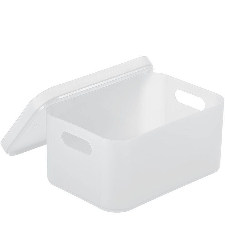 - Hộp nhựa đựng đồ có nắp 22x10.5x5.5cm có thể xếp chồng khớp nhiều thùng khi không chứa đồ, tiết kiệm không gian.
