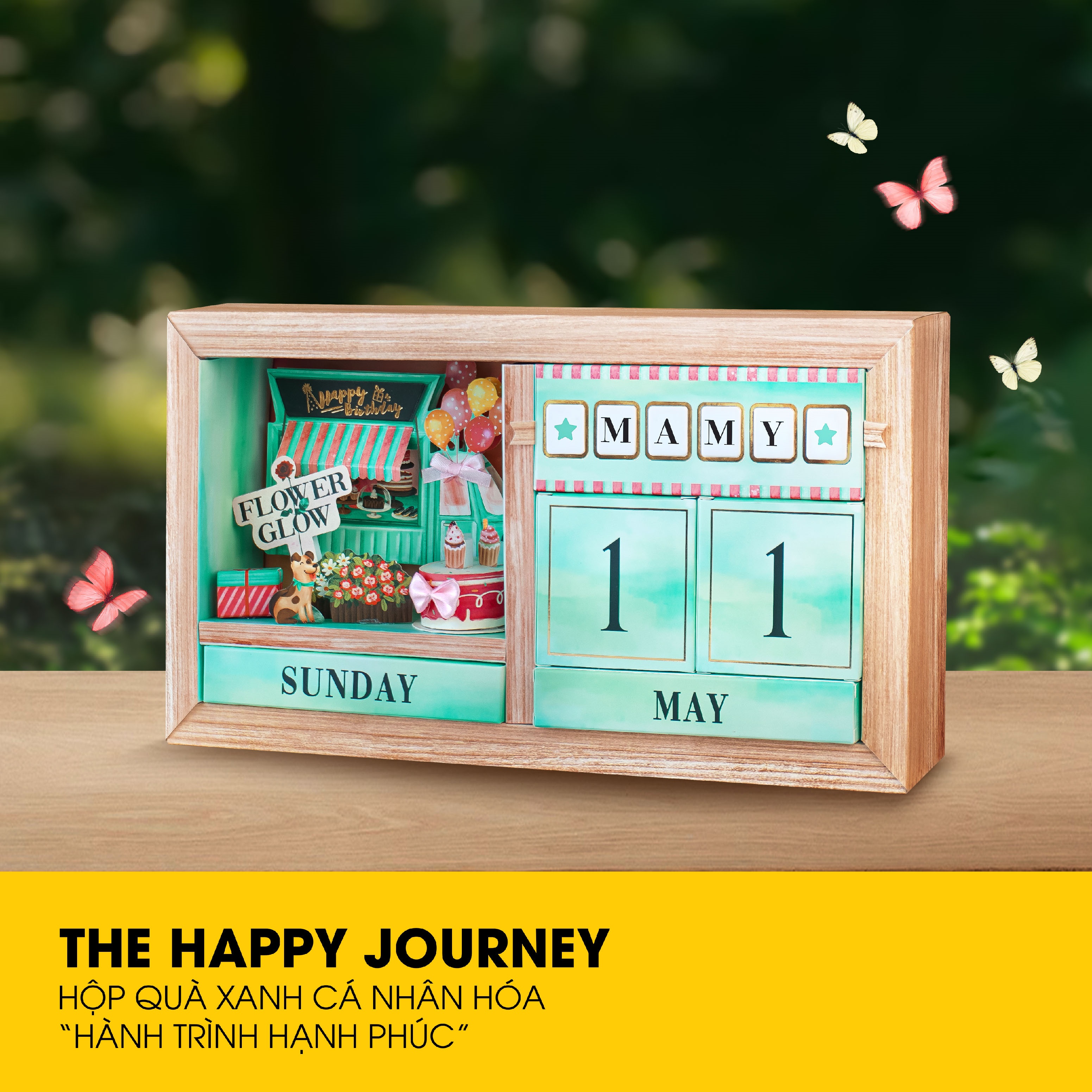 - Từ chiếc xe bánh kem đến khóm hoa rực rỡ đều được ráp tay thủ công tỉ mỉ từng chi tiết nhỏ tạo nên hộp quà HÀNH TRÌNH HẠNH PHÚC đầy tinh tế và sắc sảo.
