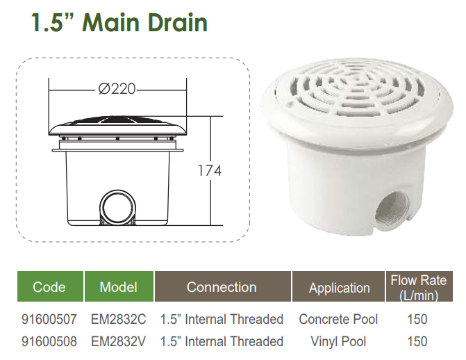 THÔNG TIN SẢN PHẨM Hộp thu đáy Emaux EM2832C Lưu lượng: 14.3 m3/h Kết nối: 60 mm Hãng sản xuất: Emaux – China