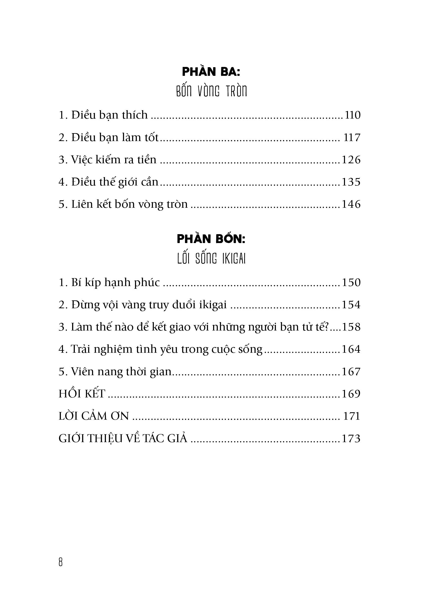 Cuốn sách này chỉ là điểm khởi đầu. Hãy nghĩ rằng nó là hộp dụng cụ chứa những công cụ giúp bạn nhỏ định hình tư tưởng và lên kế hoạch để tìm ra nguyên nhân khiến bản thân bạn hiện hữu trong cuộc đời này, từ đó xây dựng nên bản thân, chứ không đơn thuần chỉ là khám phá bản thân. Hãy tận dụng những điều bạn đọc được từ cuốn sách để thám hiểm, khám phá, và để sống theo cách ikigai!