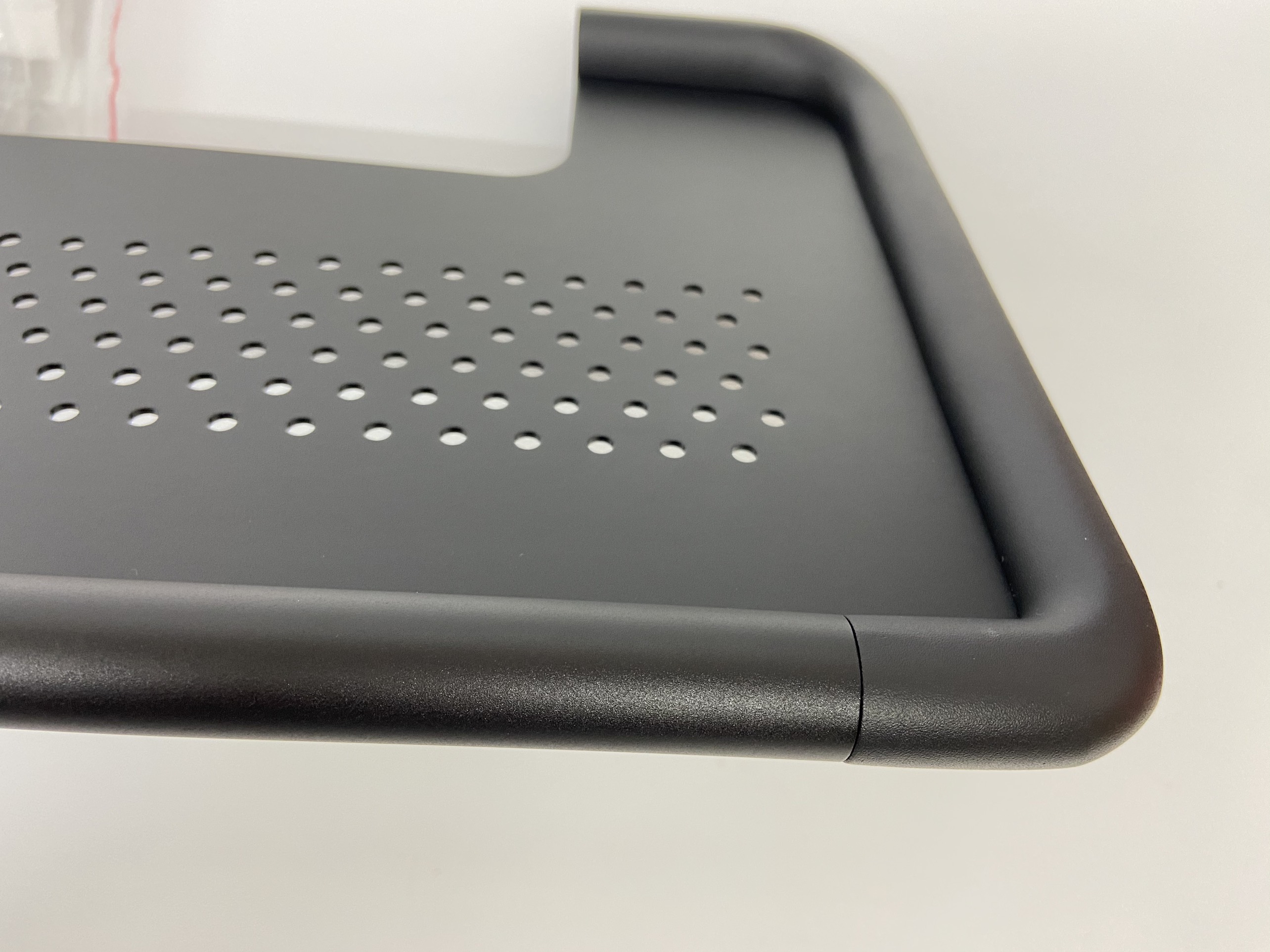 Thiết kế có nắp giúp đựng và chắn bụi. Dính vào tường bằng nắp vít hút chân không chắc chắn, không cần khoan hay đục tường. Phía trên tích hợp một giá gồm các khe