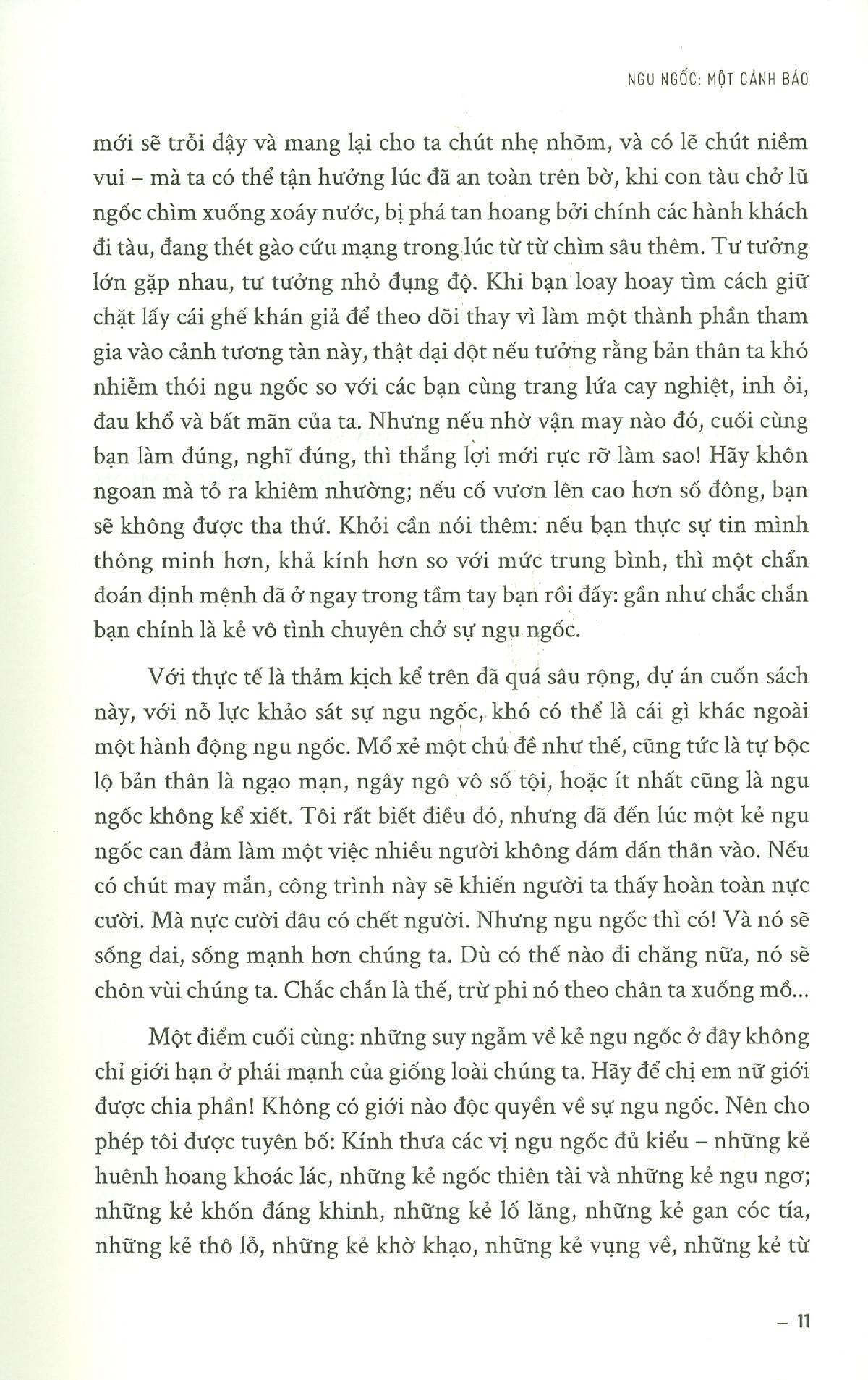 - Độc giả mà cuốn sách hướng tới là những ai? Họ cần giải quyết những công việc gì? Mọi độc giả đều có thể đọc cuốn sách này, vì nội dung sách liên quan đến việc phân tích về sự ngu si của con người trong cả hành động lẫn tâm trí