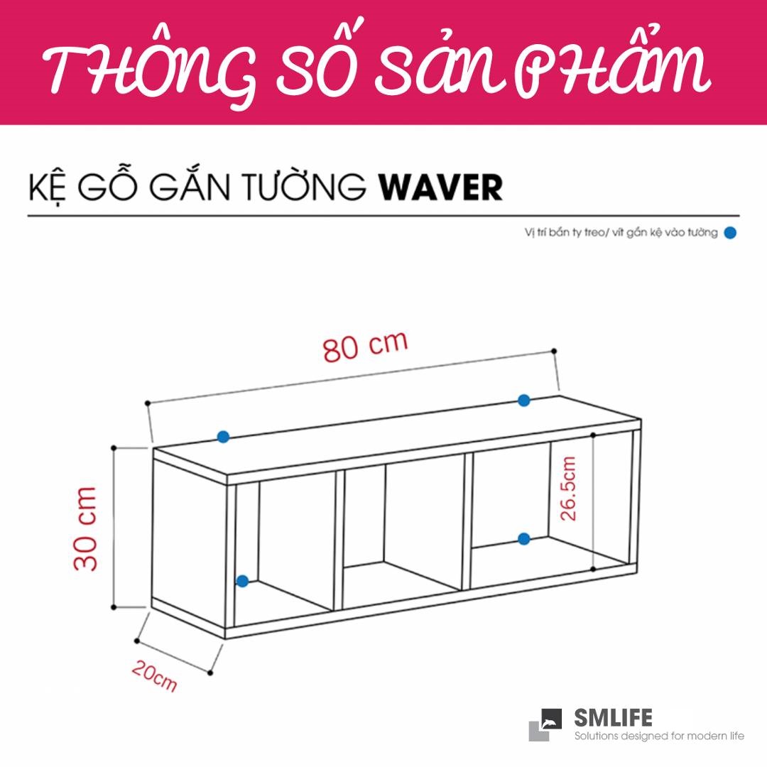 Mang đậm phong cách nội thất đơn giản, kệ gỗ trang trí gắn tường Waver là một sự bổ sung hoàn hảo cho căn hộ hay văn phòng của bạn. Kệ gỗ Waver được thiết kế theo phong cách đơn giản, hiện đại giúp bạn thoải mái trang trí sách hay các vật dụng trang trí an toàn. Sử dụng vật liệu ván ép công nghiệp MDF chống ẩm phủ Melamine cao cấp giúp kệ gỗ trang trí SMLIFE có độ bền cao, chống trầy và chống ẩm rất tốt. Bạn có thể tự lắp đặt sản phẩm dễ dàng với các phụ kiện và hướng dẫn đi kèm.