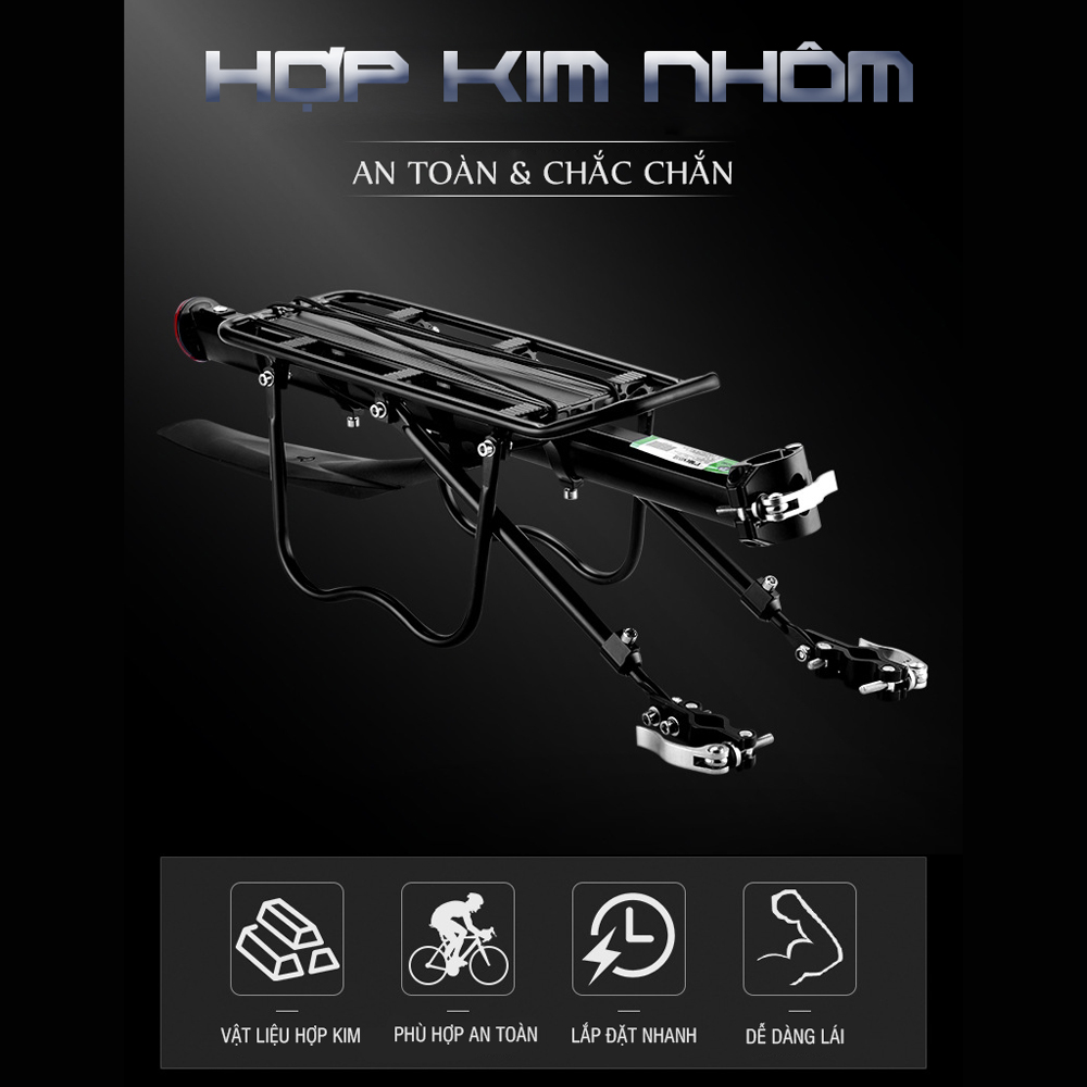 Kệ Yên Sau Gác Ba Ga Gắn Thêm Phía Sau Cho Xe Đạp Vào Cốt Yên (Tích Hợp Kèm Chắn Bùn) Đa Năng Điều Chỉnh Hợp Kim Nhôm Cao Cấp Cho Xe Đạp Leo Núi Địa Hình Mai Lee Sản phẩm mới với thiết kế chắc chắn, chất lượng cao, an toàn và chịu tải trọng lớn Chất liệu hợp kim nhôm cho trọng lượng nhẹ hơn so với các loại yên xe khác, đồng thời giúp gia tăng độ bền, cũng như thẩm mỹ xe trong quá trình sử dụng lâu dài Sản phẩm đi kèm với dây chun buộc hành lý, giúp bạn thuận tiện buộc lại hành lý của bạn 1 cách chắn chắn hơn cũng như sử dụng thuận tiện hơn khi cần thiết Thanh chịu lực chắc chắn và điều chỉnh dễ dàng lên xuống cho phù hợp với độ cao của yên   Bản nâng cấp mới này bổ sung thêm khóa bằng khớp nên việc lắp đặt của bạn dễ dàng hơn bao giờ hết, gần như không sử dụng nhiều đến công cụ/ dụng cụ để lắp ráp   Phản quang tích hợp giúp đảm bảo an toàn khi đi xe vào ban đêm Có thể tháo/ rời khi không cần thiết