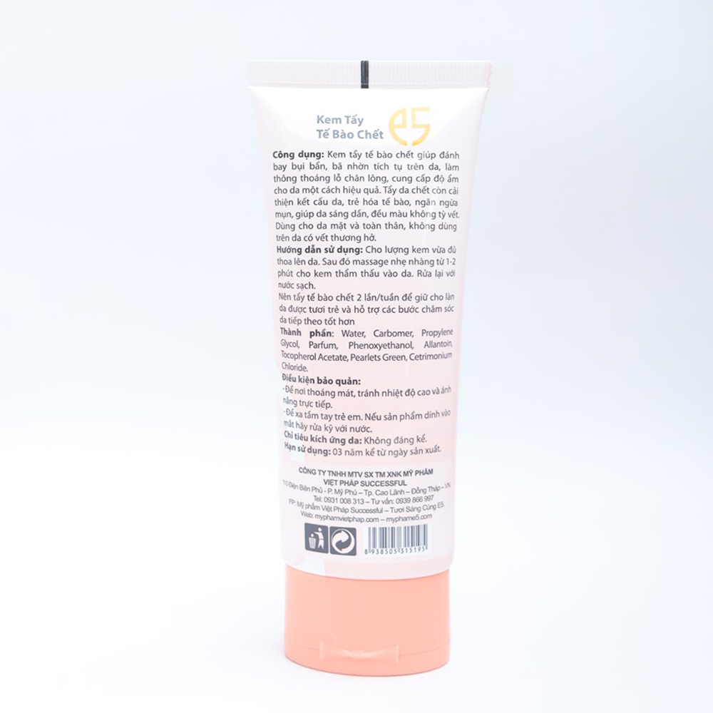 Kem Tẩy Tế Bào Chết E5 với hương thơm dịu nhẹ tạo cảm giác sảng khoái, giúp nhẹ nhàng lấy đi lớp tế bào chết trên da, những chất cặn bã lẫn độc tố trên bề