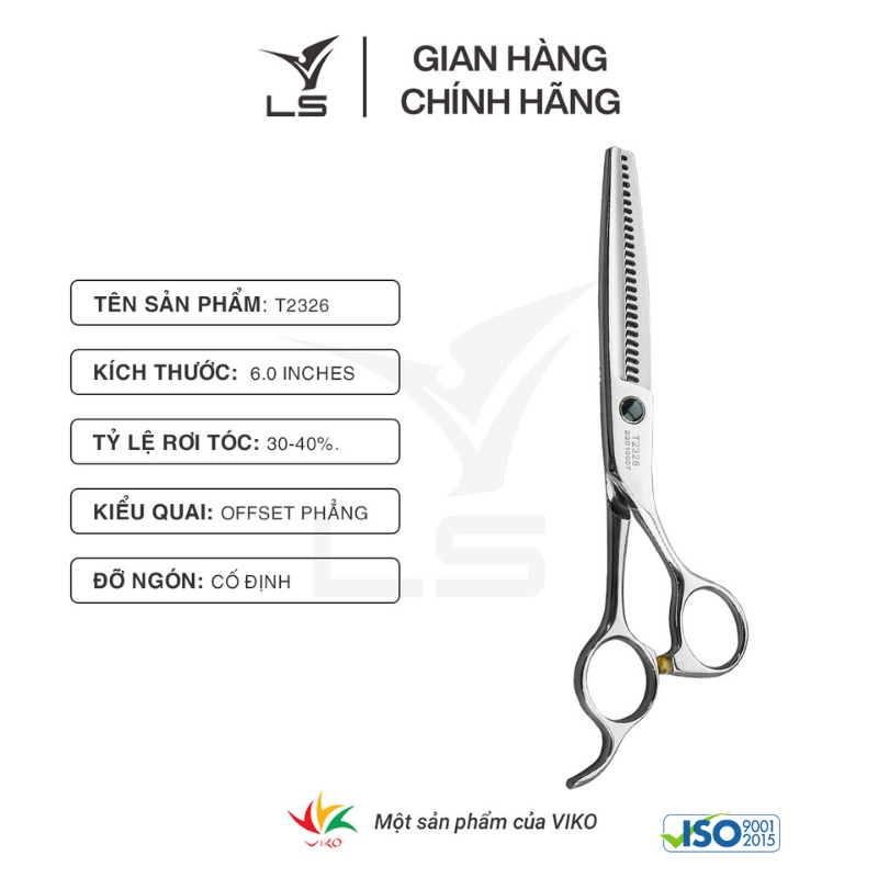 Kéo cắt tóc LS là một thương hiệu được sản xuất bởi Công ty TNHH Dụng cụ cắt Việt Hàn (Viko cutting tools Company limited) - đáp ứng đầy đủ các tiêu chuẩn quốc tế. Kéo LS thuộc dòng sản phẩm phổ thông, hướng tới đại đa số khách hàng trung bình tại các tỉnh thành trong cả nước. Với hệ thống bán hàng rộng khắp được xây dựng trong 14 năm phát triển, Kéo LS luôn nỗ lực phục vụ khách hàng một cách thuận tiện nhất. THÔNG TIN SẢN PHẨM KÉO TỈA TÓC RĂNG ĐƠN THẲNG LS T2326