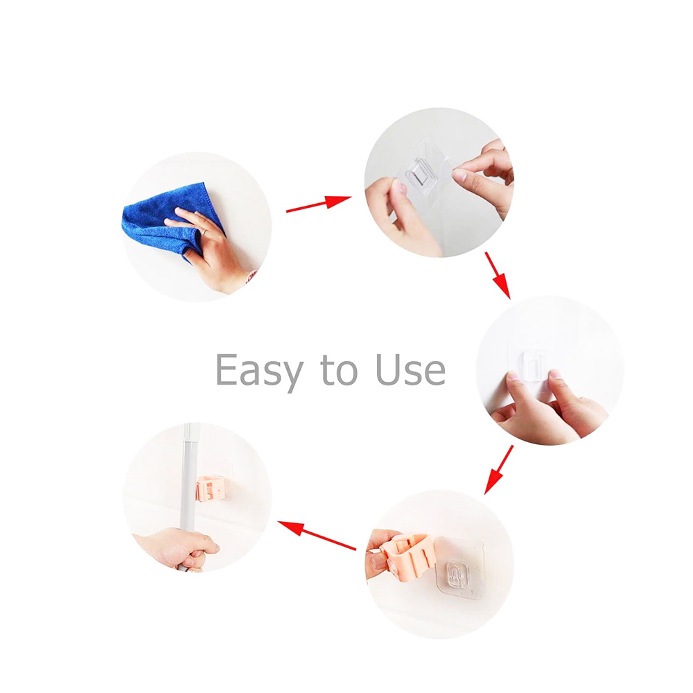 Móc dán tường thông minh kẹp chổi giữ cây lau nhà miếng trong suốt đa năng treo đồ