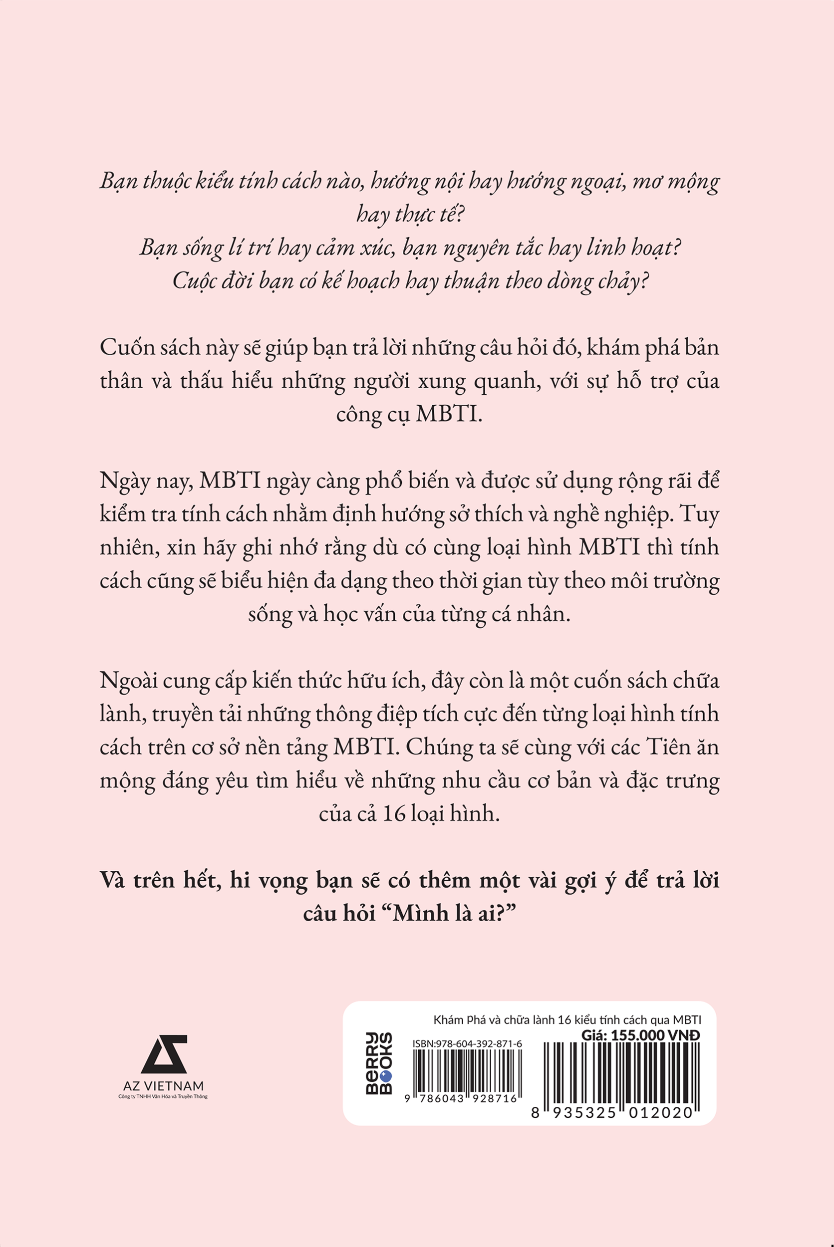 Cuốn sách này sẽ giúp bạn trả lời những câu hỏi đó, khám phá bản thân và thấu hiểu những người xung quanh, với sự hỗ trợ của công cụ MBTI.