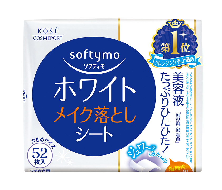 Khăn Giấy Tẩy Trang Dưỡng Trắng Mịn Da Kosé Softymo White Cleansing Sheet W (Gói Refill 52 miếng) Xuất xứ: Nhật Bản Sản phẩm được tẩm sẵn dung dịch tẩy trang trong chất liệu cotton