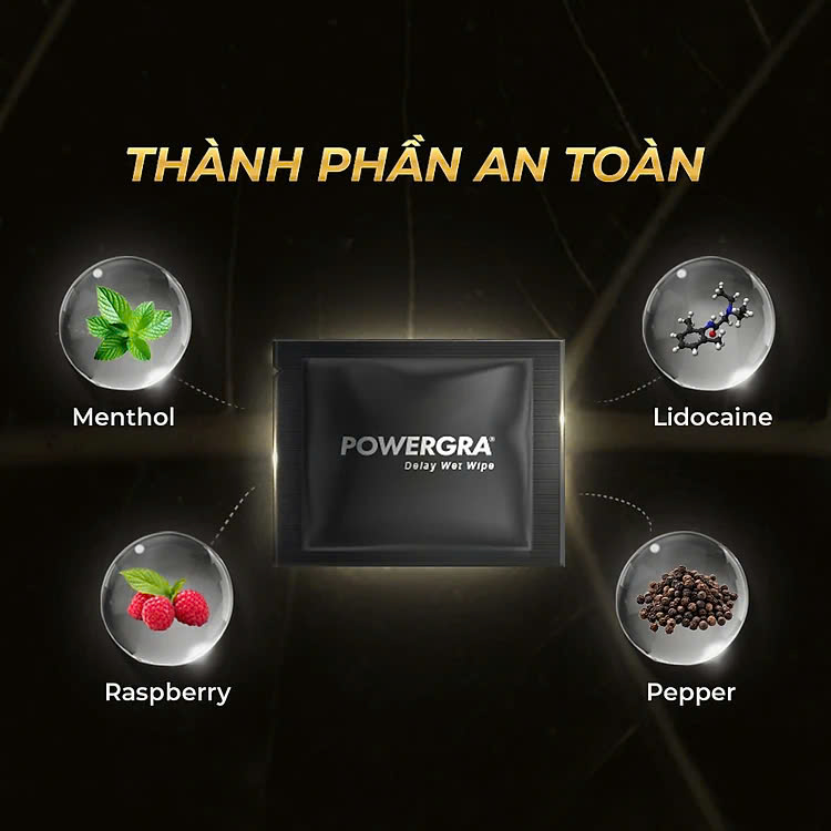 ✪ Thông tin: Khăn lau Powergra bằng cách sử dụng công nghệ chuyển giao thẩm thấu nhanh vào da mang tới sự an toàn cũng như hiệu quả lên gấp nhiều lần. Thiết kế của sản phẩm nhỏ nhắn, độc đáo như một chiếc danh thiếp giúp các quý ông có thể dễ dàng bỏ vào trong ví và mang tới bất cứ nơi đâu. ✪ Thành phần: Nước, vải không dệt Spunlace, hạt tiêu, quả mâm xôi, cây dương đào, Lidocaine, DL-Menthol, PEG-40 Hydrogenated Castor Oil, Propylene Glycol, Benzalkonium Chloride, Polyaminopropyl Biguanide. ✪ Cách dùng: Lấy một miếng khăn lau và lau trực tiếp lên cậu nhỏ trước khi nhập cuộc 5 phút. Vệ sinh lại với nước sau khi sử dụng ✪ Quy cách: Hộp 10 cái ✪ Thương hiệu: Powergra ✪ Bảo quản: Nơi khô ráo thoáng mát ✪ Hạn sử dụng: 05 năm