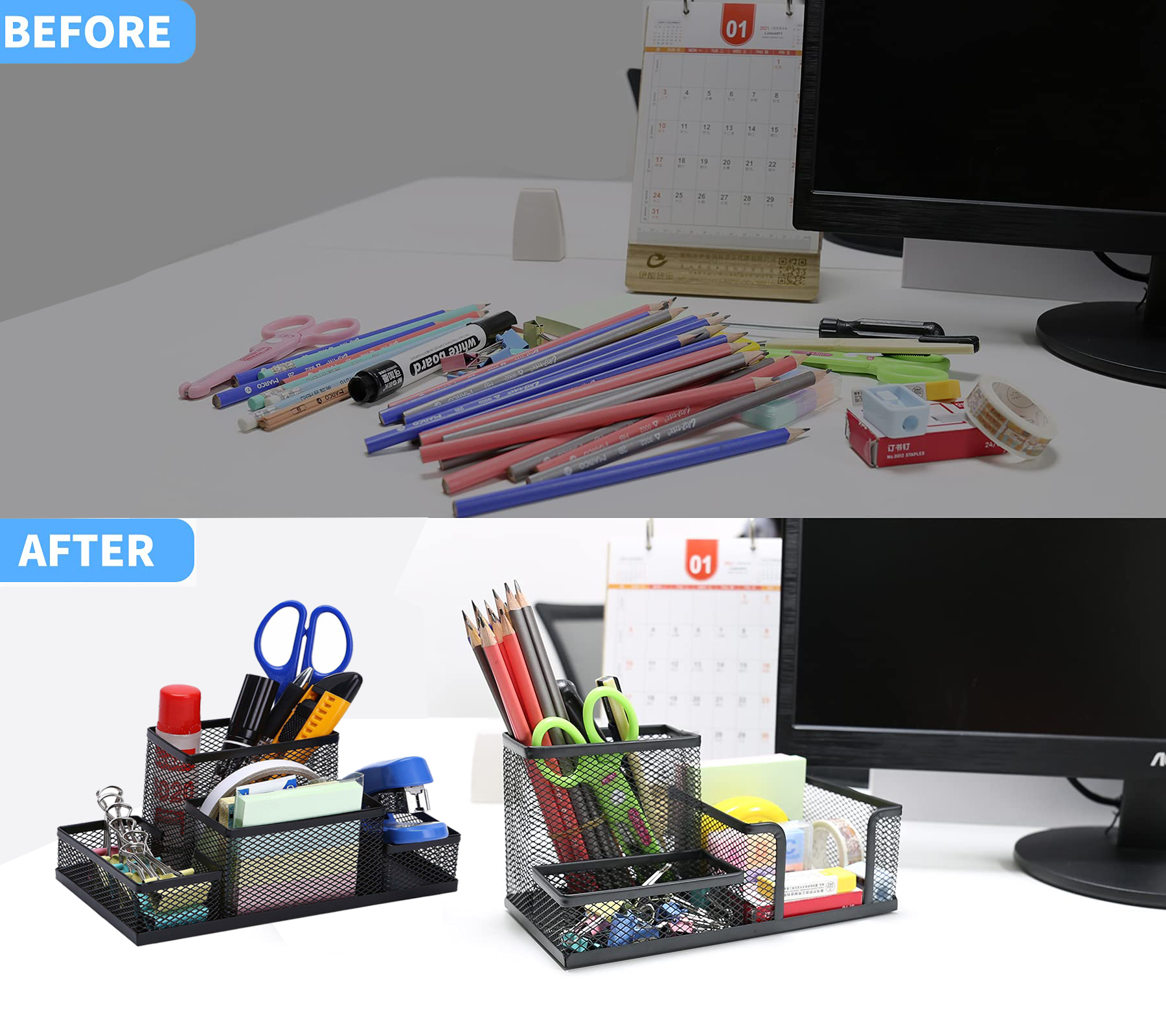 ✨Khay cắm bút, khay đựng bút, hộp đựng bút để bàn 3 ngăn kim Loại màu đen đồ dùng văn phòng Legaxi