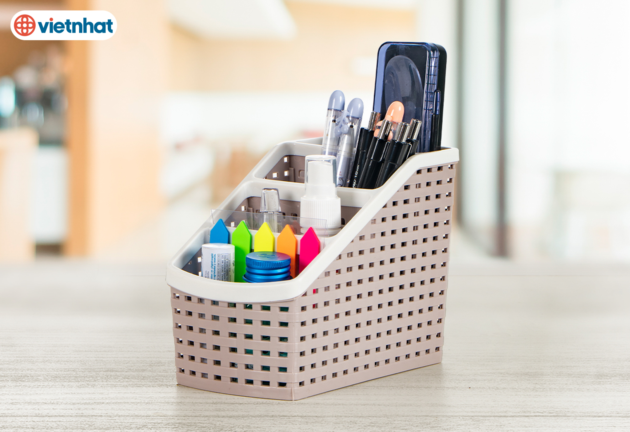 Thương hiệu nhựa Việt Nhật đã không quá xa lạ với người Việt Nam .Việt Nhật Plastic là một trong những doanh nghiệp có bề dày lịch sử và tốc độ tăng trưởng mạnh trong ngành nhựa. Với phương châm "Chất lượng là nền tảng của sự phát triển", Việt Nhật đã từng bước chiếm lĩnh thị trường, khẳng định được vị thế và niềm tin đối với khách hàng bởi những sản phẩm nhựa gia dụng an toàn, tiện ích và hiện đại. Sự ra đời của dòng sản phẩm cao cấp chuẩn Nhật một lần nữa minh chứng cho tinh thần không ngừng đổi mới, sáng tạo và khả năng làm chủ công nghệ sản xuất hiện đại của con người Việt Bạn cuống cuồng tiềm những món dụng cụ trang điểm và mỹ phẩm để make up kịp giờ đi làm, thật mất thời gian. Những vật dụng nhỏ ở nhà thường xuyên bị thất lạc hoặc nằm ngổn ngang ở khắp nơi.