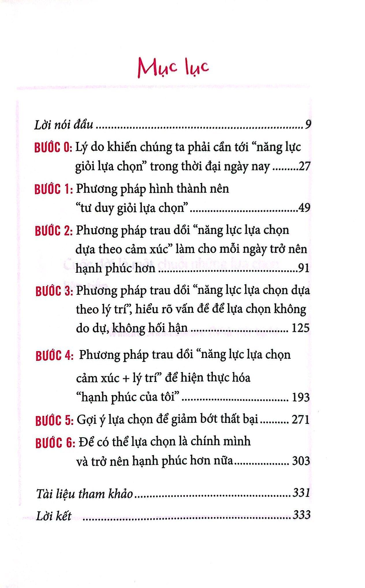 Trong cuốn sách này, chúng ta sẽ tập trung vào cách tự trang bị cho bản thân “năng lực lựa chọn” để có được công việc mà m.ình yêu thích, người mà m.ình yêu thương, học được cách sắp xếp thời gian theo ý muốn, vừa làm giàu thêm cho công việc và đời sống cá nhân, vừa dựng xây nên một tương lai tươi sáng tốt đẹp, và trên hết là, có thể giúp chính m.ình cảm thấy hài lòng và hạnh phúc.