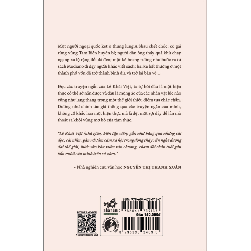 Một người ngoại quốc kẹt ở thung lũng A Shau chết chóc; cô gái vùng Tam Biên huyền bí; người đàn ông thấy quá khứ chạy ngang xa lộ rặng đồi đá đen; một kẻ hoang tưởng như bước ra từ sách Modiano đi dạy người khác viết sách; hai kẻ bất thường ở một thành phố vốn đã trở thành bình địa và trở lại bản vẽ Đọc các truyện ngắn của Lê Khải Việt, ta tự hỏi đâu là một hiện thực có thể sờ nắn được và đâu là mộng ảo của các nhân vật lúc nào cũng như lang thang trong một thế giới thiếu điểm tựa chắc chắn. Dường như chính tác giả thông qua các truyện ngắn của mình, không cố khắc họa một hiện thực mà dệt một sợi dây để lần mò thoát ra khỏi vùng mơ hồ của tâm thức.