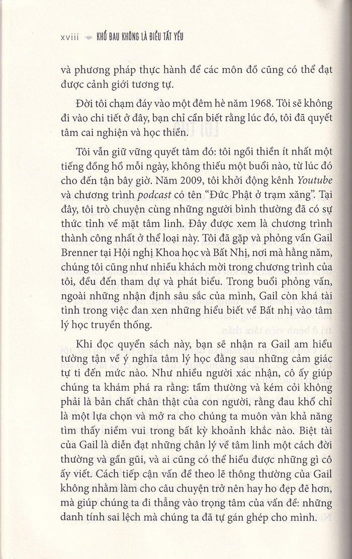 Khổ Đau Không Là Điều Tất Yếu - Con đường tâm linh đến với tự do đích thực dành cho những ai còn đang dằn vặt bản thân vì những mặc cảm tự ti của tác giả Tiến sĩ Gail Brenner, Với lời đề tựa của Rick Archer, người dịch Đỗ Tôn Minh Khoa Những lời khen tặng đặc biệt dành cho cuốn sách!