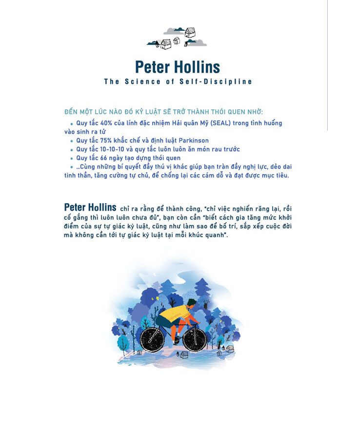 Với Sống kỷ luật, gặt thành công, Peter Hollins cho chúng ta thấy để thành công, “chỉ việc nghiến răng lại, rồi cố gắng thì luôn luôn chưa đủ”, bạn còn cần “biết cách gia tăng mức khởi điểm của sự tự giác kỷ luật, cũng như làm sao để bố trí, sắp xếp cuộc đời mà không cần tới tự giác kỷ luật tại mỗi khúc quanh”.