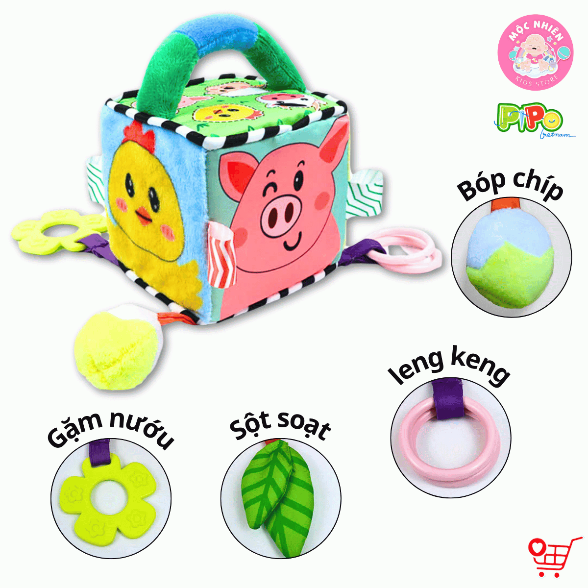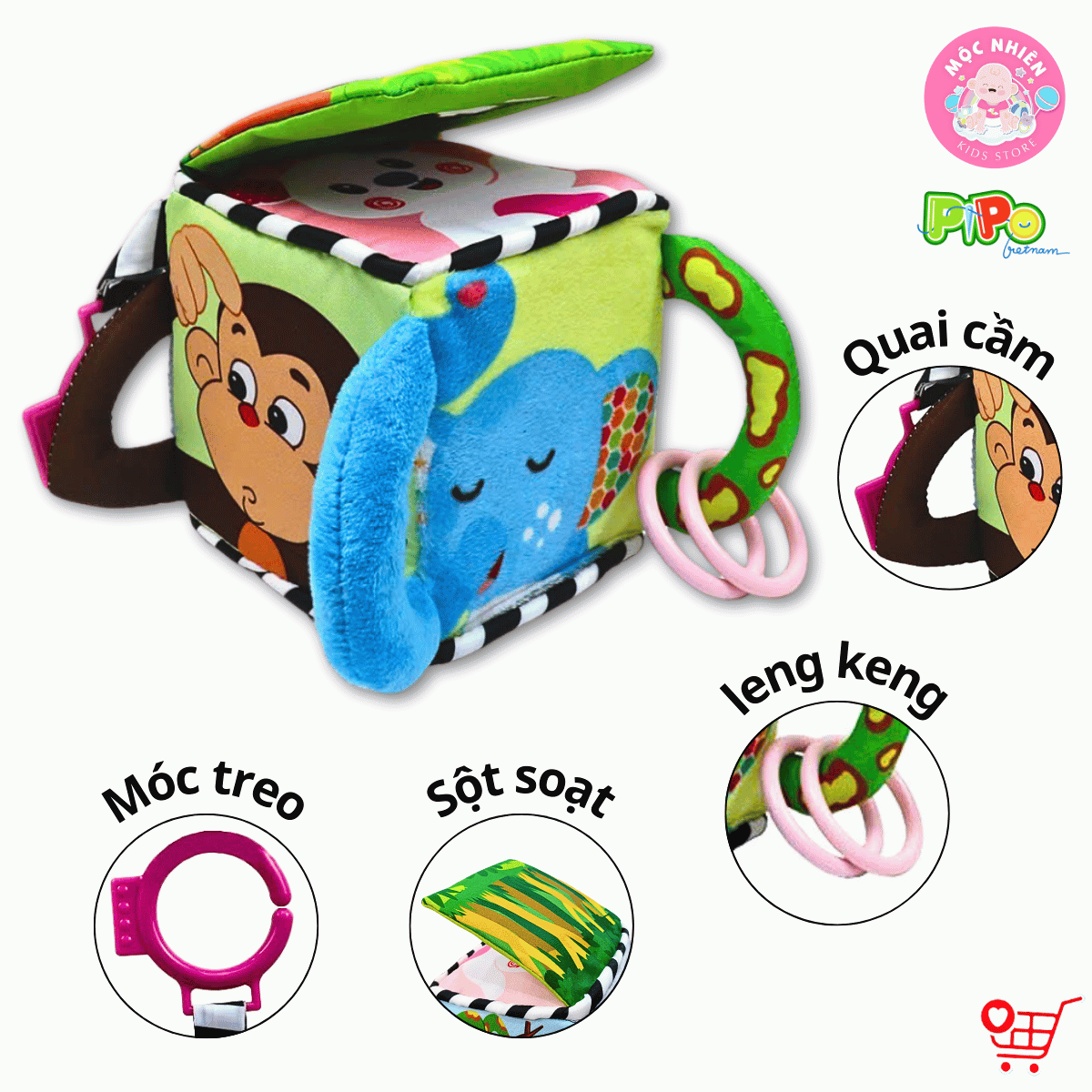Khối vải luyện kỹ năng cho bé là đồ chơi tương tác 4 chiều cho bé. Được xây dựng trên khối lập phương 6 mặt với các chức năng hình dáng và vật liệu khác nhau. Cung cấp cho bé các kiến thức về con vật phong phú.