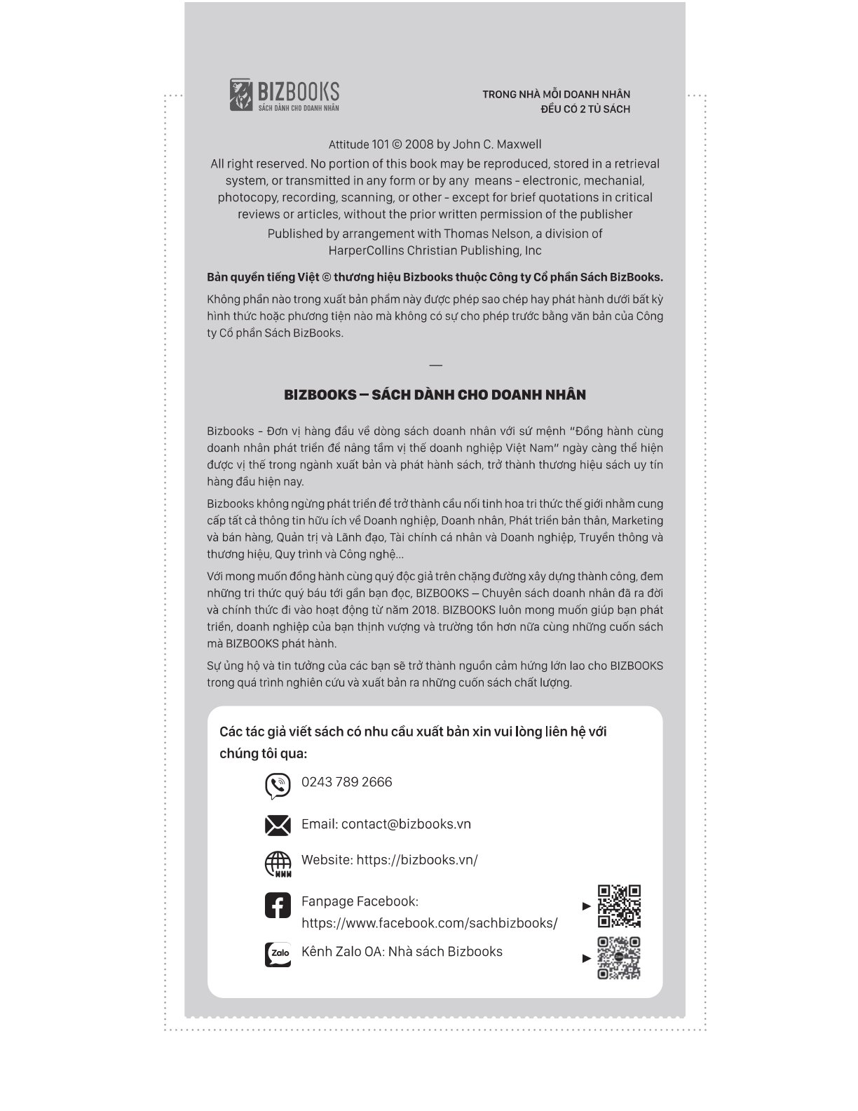 Trong một thế giới mà doanh nhân thường bị thôi thúc phải chạy theo chiến lược, quy trình và KPI, John Maxwell kéo bạn quay trở lại với thứ gốc rễ nhất – thái độ. Không phải năng lực, không phải công cụ, mà là thái độ sống, thái độ làm việc, và thái độ lãnh đạo. Vì chính thái độ mới là thứ âm thầm định hình văn hóa doanh nghiệp, mỗi ngày, từng giờ – ngay cả khi bạn không nhận ra.