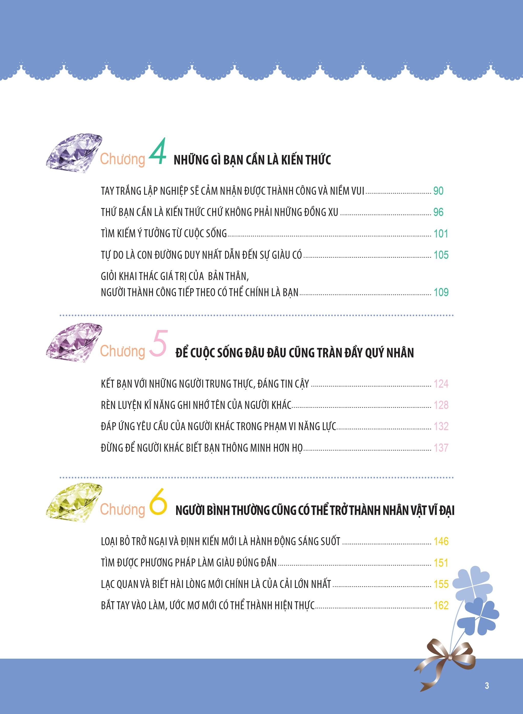 Nội dung của chương đề cao mối quan hệ giữa con người với nhau trong cuộc sống. Để có thể gặp được quý nhân mọi lúc và mọi nơi, đương nhiên bạn cần thay đổi chính bản thân mình và điều chỉnh thái độ sống phù hợp nhất. Hãy kết bạn với những người trung thực, đáng tin cậy, đó sẽ là những người bạn hoàn toàn có thể tin tưởng và không gây bất cứ tổn hại nào cho bạn. Một thói quen tốt để có được thiện cảm của mọi người là hãy tập nhớ tên người khác, điều đó sẽ gây được thiện cảm tốt bất ngờ mà chính bạn cũng không tưởng tượng được. Hãy khéo léo trong giao tiếp hàng ngày, thể hiện bản thân chừng mực vừa phải, chắc chắn bạn sẽ gặp được quý nhân trong mọi việc.