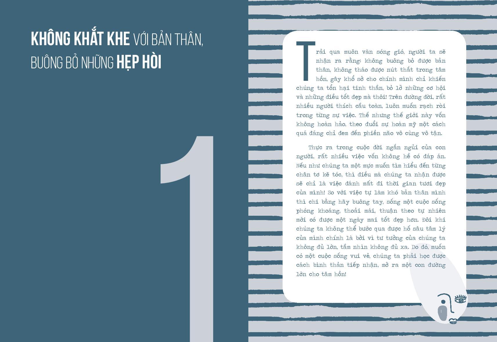 Với góc nhìn đầy thấu đáo, tác giả Hoa Dương soi lăng kính qua từng vấn đề, từng sự việc, giúp bạn nhận ra việc cân bằng cảm xúc có mối tương quan trực tiếp tới từng thời khắc của cuộc đời mỗi người. Thay vì tức giận, nếu bạn lựa chọn một tâm thế, một góc nhìn lạc quan hơn, thì tất cả những khó chịu sẽ trở nên nhỏ nhặt. Chỉ cần bạn dũng cảm, lựa chọn đi theo mặt trời, cuộc đời tự nhiên sẽ tràn ngập ánh nắng và niềm vui.