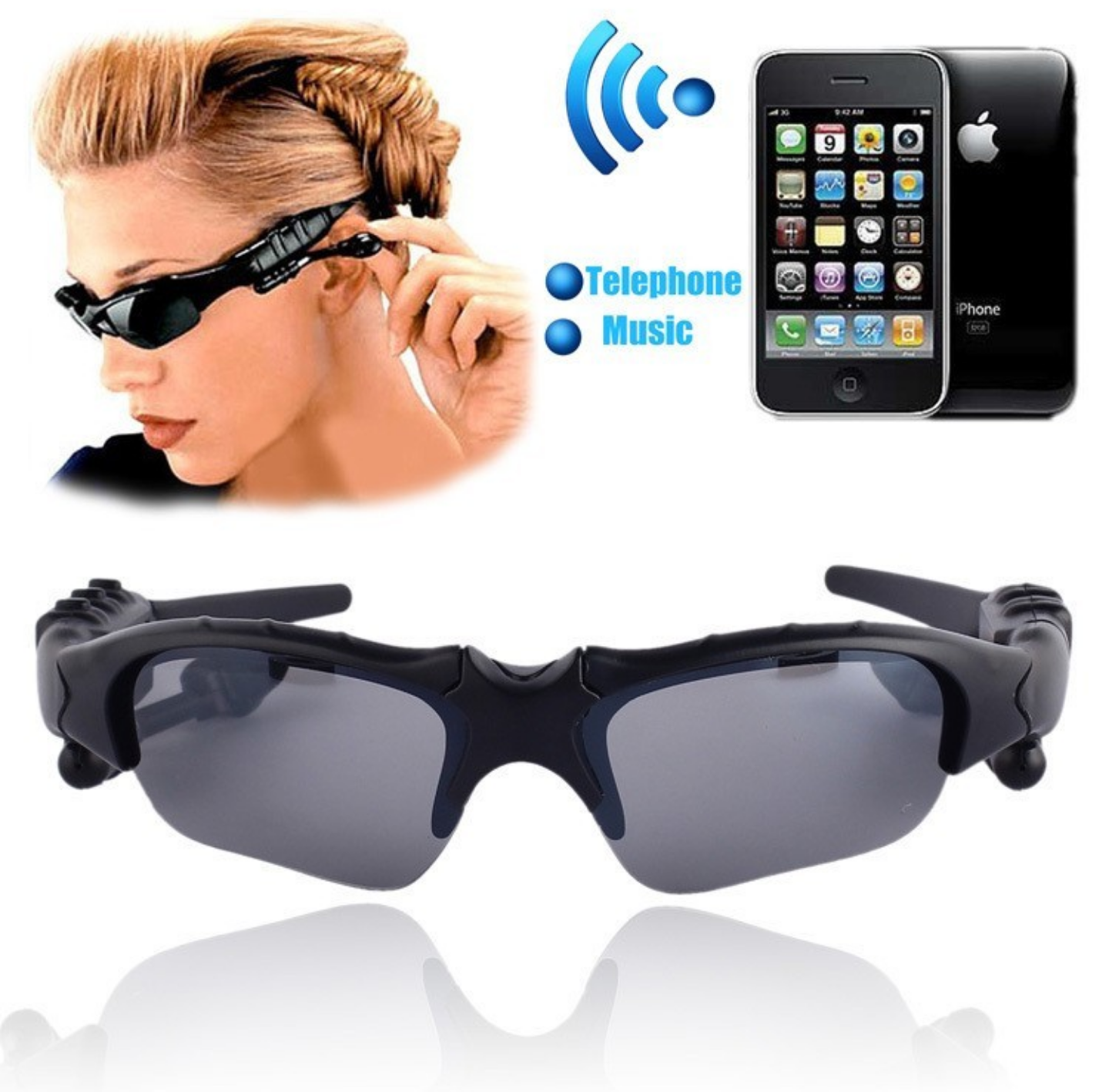 siêu mẫu mới kính đeo thời trang chống chói ngược cực kính đeo nghe nhạc kết nối bluetooth cao cấp