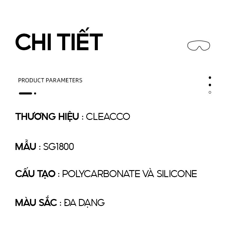 Chất liệu: kính được làm từ vật liệu PC nhập khẩu và silicone có độ bền cao. Kính sử dụng nguyên liệu ổn định UV siêu chống tia cực tím và công nghệ cao xử lý tránh sương mù cho mắt kính.