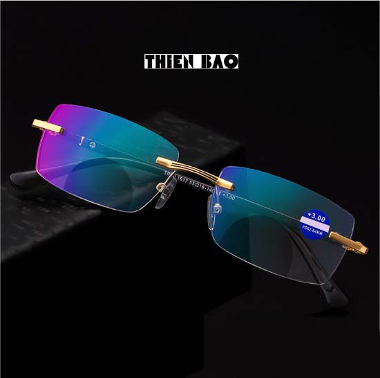 ✨Kính lão thị, viễn thị Hai tròng nhìn XA - GẦN đọc chữ nhìn xa, tròng váng xanh, GỌNG KHOAN nam nữ không viền KT1K