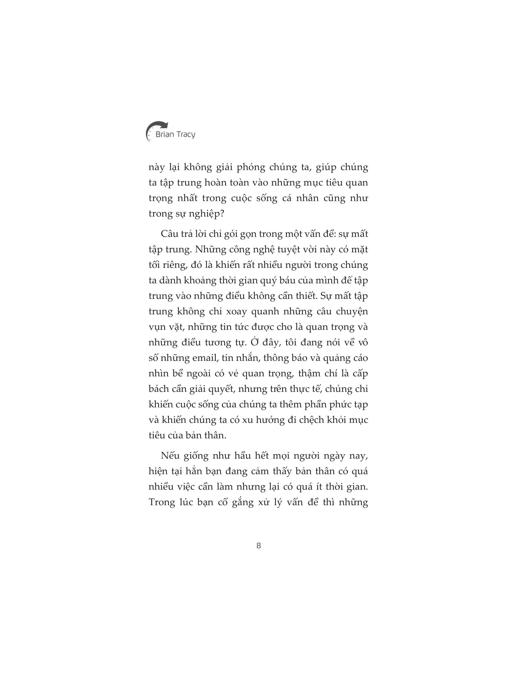 Duy trì năng suất tối ưu trong thế giới hiện đại là một công việc đầy thử thách. Vì ta đang phải đối mặt với quá nhiều yếu tố gây sao nhãng và mất tập trung, với “sự tấn công” không ngừng nghỉ của các loại , tin nhắn, thông báo, quảng cáo, tin tứ từ điện thoại thông minh và Internet tốc độ cao. Những yếu tố này có vẻ quan trọng đối với thành công và hạnh phúc của chúng ta, nhưng trên thực tế, chúng chỉ khiến cuộc sống của ta thêm phức tạp và đẩy chúng ta lệch xa khỏi mục tiêu của m.ình.