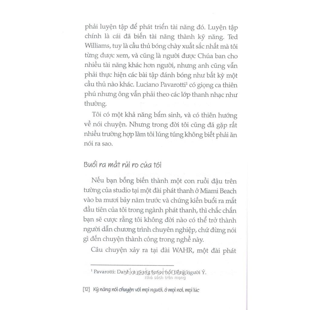 How To Talk To Anyone, Anytime, Anywhere – Kỹ Năng Nói Chuyện Với Mọi Người Ở Mọi Nơi, Mọi Lúc là cuốn sách thuộc hàng “kinh điển” về nghệ thuật giao tiếp, được “ông hoàng” Larry King - người dẫn chương trình rất có ảnh hưởng trên kênh truyền hình CNN, Mỹ - đúc kết từ sự nghiệp hơn 30 năm trong ngành phát thanh và truyền hình.