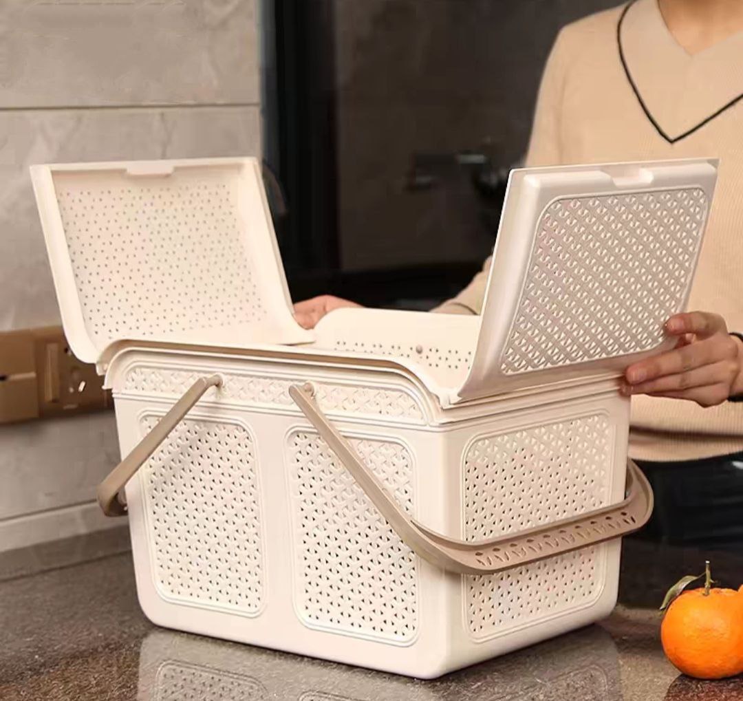 GIỎ ĐỰNG ĐỒ ĐI SINH CHO MẸ Chiếc giỏ nhỏ gọn, có quai sách tiện lợi có thể để ngay trên giường để mẹ có thể lấy đồ thay cho bé một cách dễ dàng. Được làm từ nhựa PP an toàn cho bé. Có 2 nắp đóng, mở khi lấy và cất quần áo. Thiết kế rộng rãi để gấp gọn quần áo của bé gọn gàng không bị nhăn nhúm. Màu sắc: hồng, xanh, kem Kích thước: Mã sản phẩm: 2604 Kích thước: D38xR27xC26.5 (cm)
