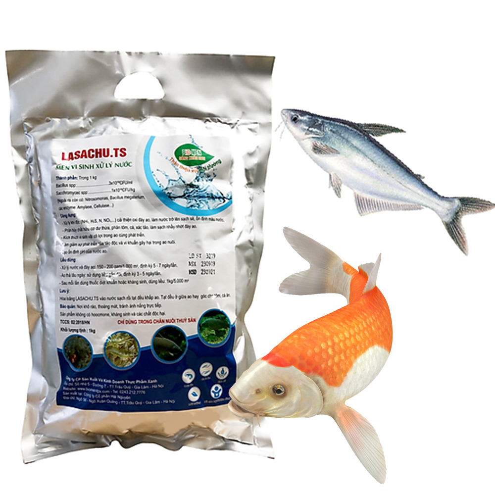 Chế phẩm vi sinh xử lý môi trường ao nuôi Thủy sản VI SINH SIÊU CẤP ! PHÂN GIẢI ĐỘC TỐC. ỔN ĐỊNH MÀU NƯỚC ! Chế phẩm sinh học Lasachu là dòng chế phẩm xử lý môi trường ao nuôi cho Thủy sản cao cấp nhất hiện nay. Đây là đề tài nguyên cứu của các giảng viên, chuyên gia Nông nghiệp hàng đầu của Trường Đại học Nông nghiệp 1 Hà Nội. Trong Chế phẩm này có tổng hợp hàng ngàn tỷ các chủng vi khuẩn có lợi giúp phân giải các tạp chất khó tan thành dễ tan, phân giải độc tố, ổn định màu nước, cân bằng pH và bổ sung dinh dưỡng cho môi trường ao nuôi. [ 1 gói Chế phẩm xử lý tới 5000m3 diện tích ao nuôi ] Vi sinh xử lý ao nuôi tôm, cá LASACHU Thành phần: