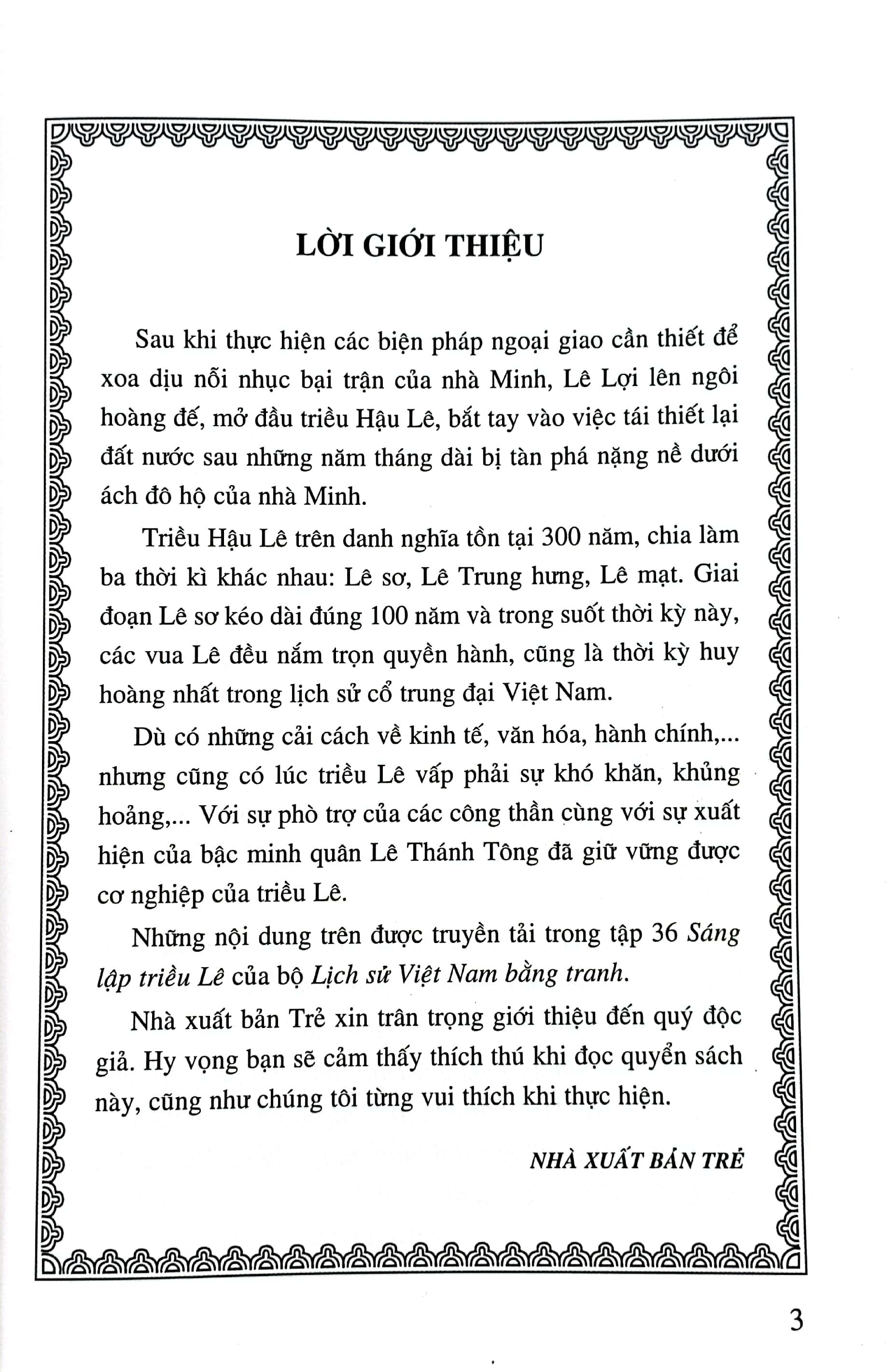 Lịch Sử Việt Nam Bằng Tranh - Tập 36 - Sáng Lập Triều Lê Sau khi thực hiện các biện pháp ngoại giao cần thiết để xoa dịu nỗi nhục bại trận của nhà Minh,