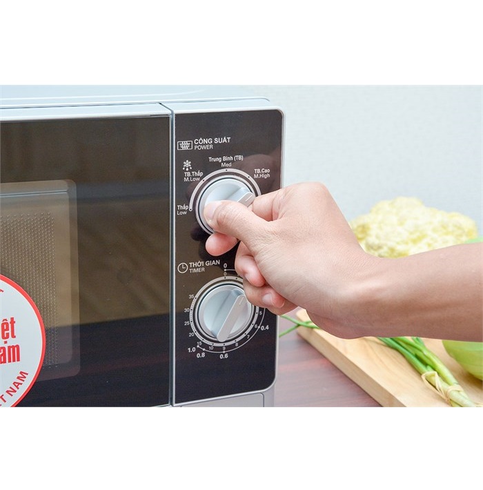 Tính năng nổi bật : – Bảng điều khiển cơ học dễ dàng sử dụng – Thiết kế sang trọng hiện đại. THÔNG SỐ KỸ THUẬT Điện Áp 220v-50hz Đường Kính Đĩa 24,4cm Trọng lượng khoảng 10,3 kg Công Suất Đầu Ra (vi sóng) 700W Công Suất Đầu Vào(vi sóng) 1100W Kích thước bề ngoài (cm) 47 x 38 x 28.5 Dung Tích Lò Vi Sóng 20L