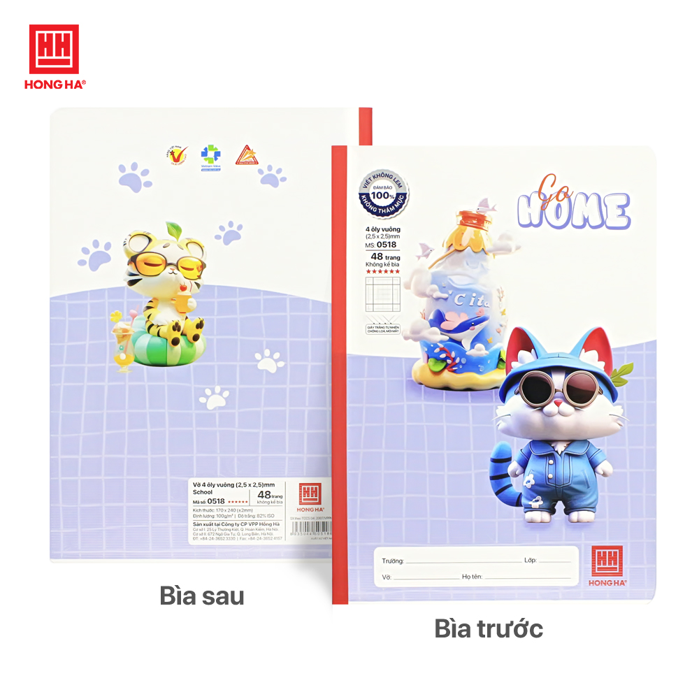 Vở 4 Ô Ly 48 trang Go Home Hồng Hà - 0518 phù hợp cho học sinh tiểu học, tập viết chữ. Giấy trắng tự nhiên, bề mặt giấy láng mịn, viết êm tay, tạo nét chữ đẹp. Giấy viết không nhòe, không thấm mực sang trang sau.