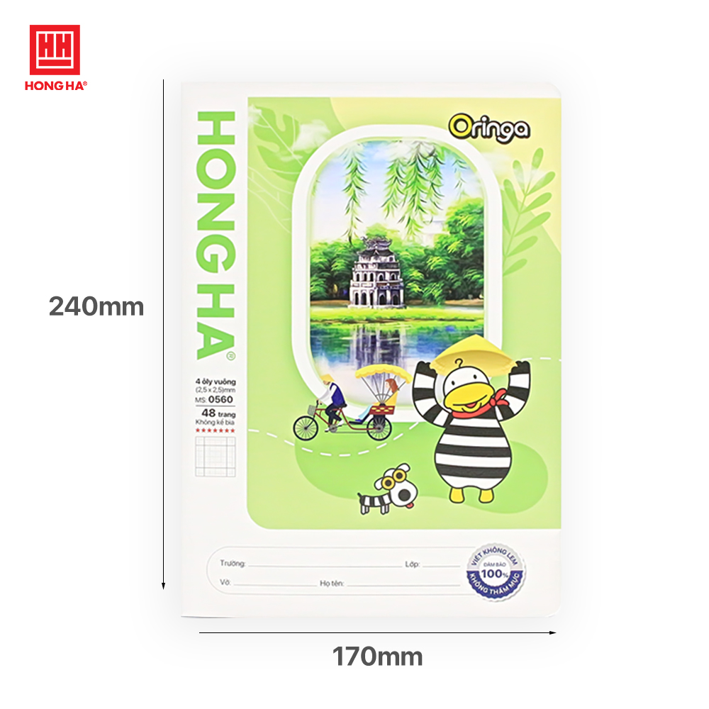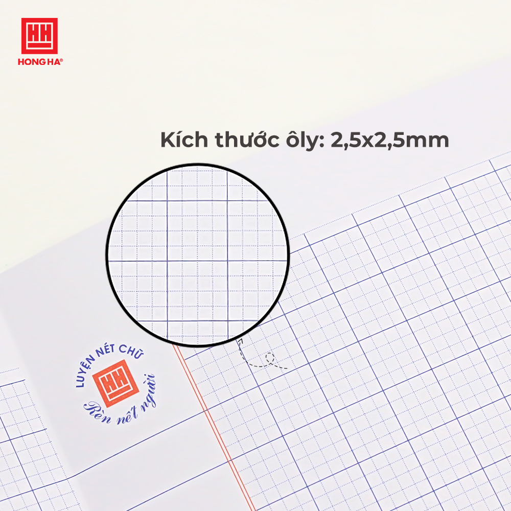 Dòng kẻ: 4 ô ly vuông (2.5 x 2.5) mm