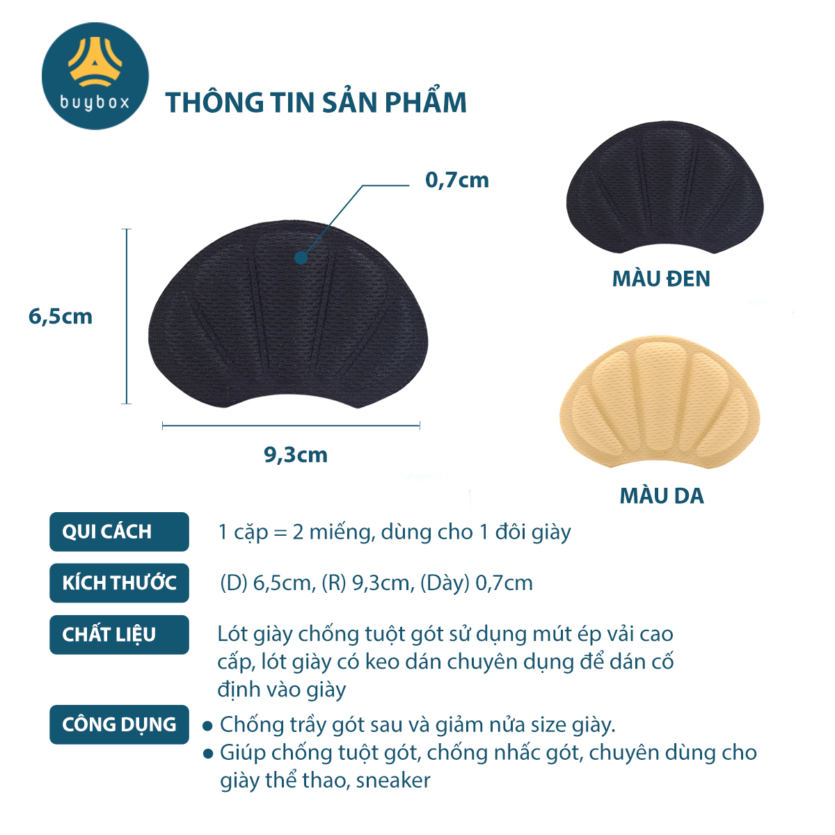 + CÔNG DỤNG - Giúp chống tuột gót, chống trầy gót sau và giảm size giày . - Sản phẩm thiết kế 4D nên ôm trọn phần lõm sau mắt cá chân - Chất liệu
