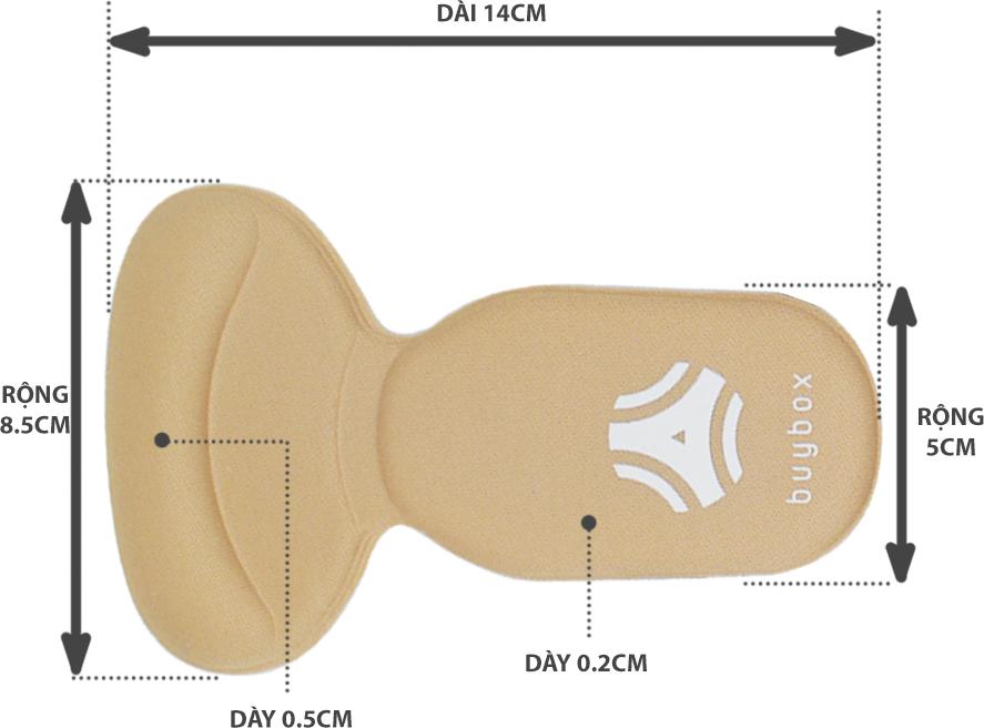 - Từ nay không còn phải lo lắng nữa vì đã có lót giày chống tuột gót, bảo vệ tuyệt đối gót chân của bạn. CÔNG DỤNG NỔI BẬT Lót giày đa năng chống tuột gót buybox là sự kết hợp giữa lót gót và bảo vệ gót Giúp chống tuột gót, chống trầy gót sau và giảm size. Giày đi lâu ngày, phần lót giày bị lún, lót vào đi êm chân hơn, thoải mái. Công dụng tuyệt vời: chống trầy gót sau bàn chân khi mang giày cao gót, giày búp bê; chống thốn gót chân; mang lại cảm giác êm chân tuyệt đối. Sản phẩm thiết kế 4D, được làm từ chất liệu cao cấp rất êm chân, thoáng khí & bền bỉ. Sản phẩm có Một kích thước dùng được cho giày từ: 35 - 36 - 37 - 38 - 39 - 40 - 41 - 42 Lót giày đa năng sử dụng được cho nhiều loại giày khác nhau như: giày cao gót, giày búp bê, giày mọi, giày lườ THÔNG TIN SẢN PHẨM Quy cách: 1 cặp = 2 miếng, dùng cho 1 đôi giày Chất liệu: lót giày chống tuột gót sử dụng mút ép vải cao cấp, lót giày có keo dán chuyên dụng để dán cố định vào giày. Kích thước: 29 (D) x 8.5 (R) cm, dày 0.4cm. Dùng cho giày size từ 35 - 36 - 37 - 38 - 39 - 40 -41 -42-43-44 Thiết kế: Thiết kế 4D theo cấu tạo và đặc điểm vận động của bàn chân giúp thoải mái khi mang giày. Màu sắc: có 2 màu Kem và Đen HƯỚNG DẪN SỬ DỤNG
