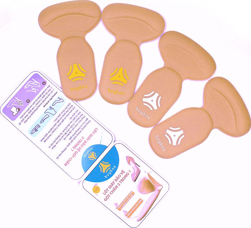 - Đặt lót chống tuột gót vào giày, canh chỉ sát vào gót và dán chặt Lưu ý: Sản phẩm mang thương hiệu buybox có bao bì in logo và hướng dẫn sử dụng chi tiết đi kèm.