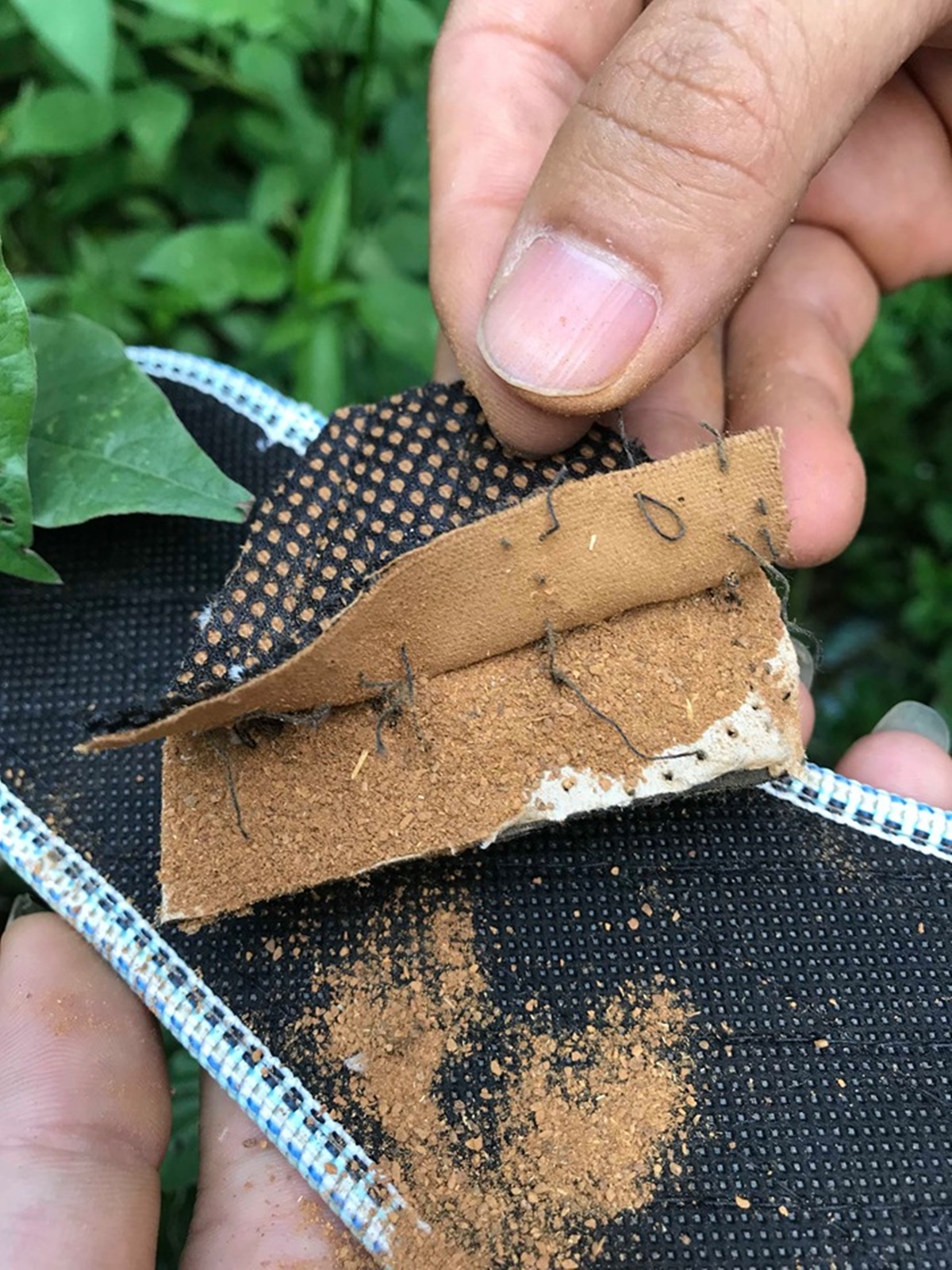 Chất liệu sản phẩm lót giày lưới 2 lớp CL-06 – Vải lưới 2 lớp – Vải cotton 100% – Bột quế tự nhiên 100% – Giấy hút ẩm – Vải không dệt màu đen – Viền xung quanh bằng dây thổ cẩm