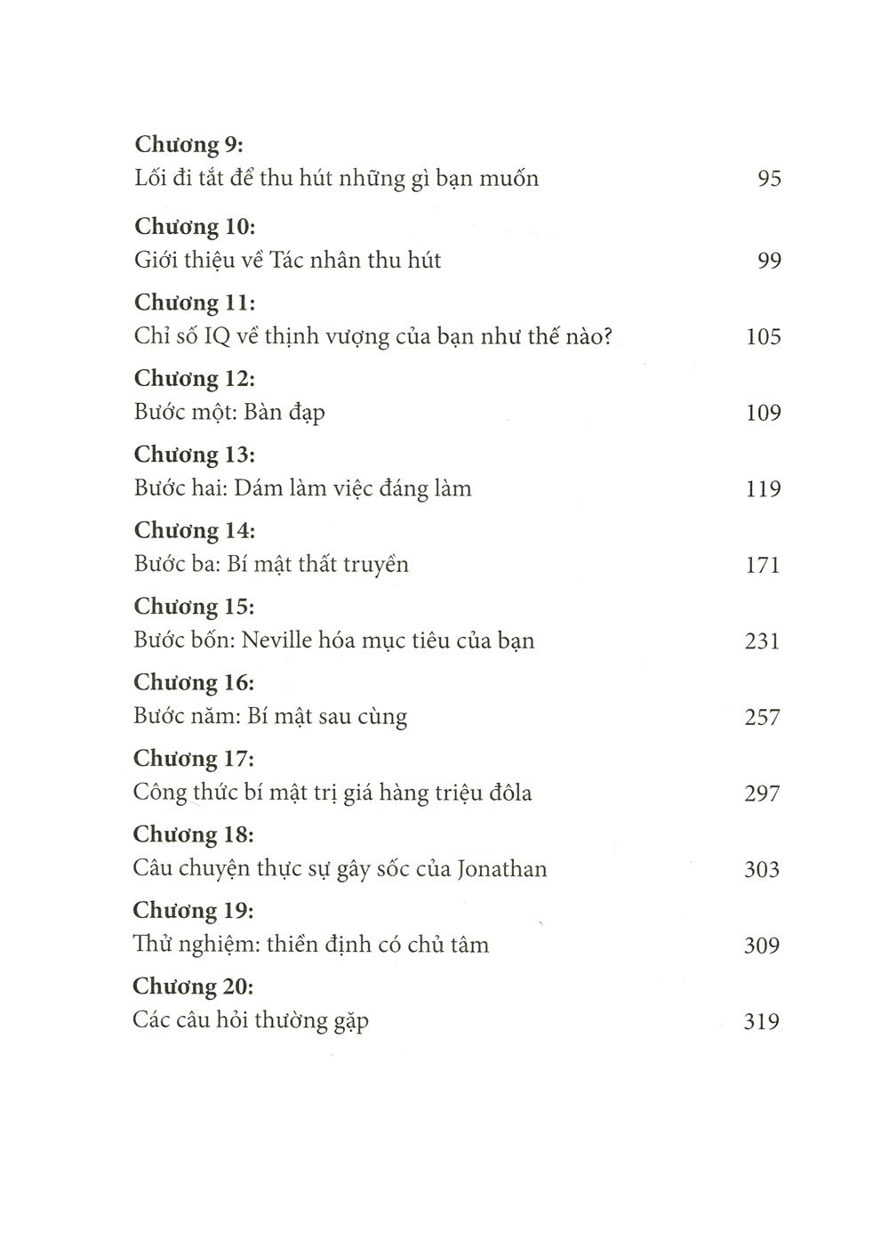 Rất nhiều người cứ loay hoay tìm cách. Tôi ngày xưa cũng vậy. May thay, sau khi đọc xong cuốn Người nam châm – bí mật của luật hấp dẫn, tôi đã đọc ngay cuốn Luật hấp dẫn – 5 bước thực hành và nói thật hai cuốn sách này đã làm thay đổi tôi hoàn toàn. Vậy nên trong lần tái bản này tôi không thể không viết vài dòng về cuốn sách.
