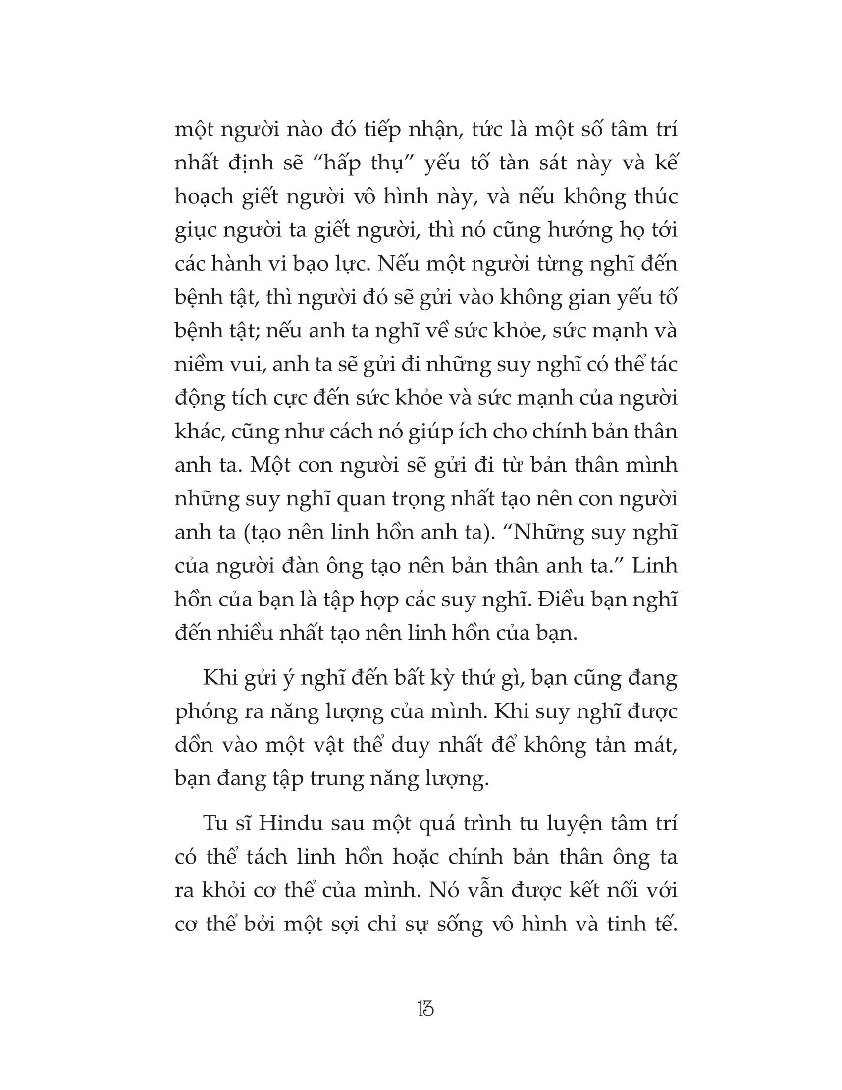 “Những suy nghĩ vô hình và không được nói ra vẫn luôn tỏa ra từ chúng ta như một dòng chảy năng lượng, tựa như một dòng nước mà ta có thể nhìn thấy, hoặc một dòng điện mà ta không thể nhìn thấy.”