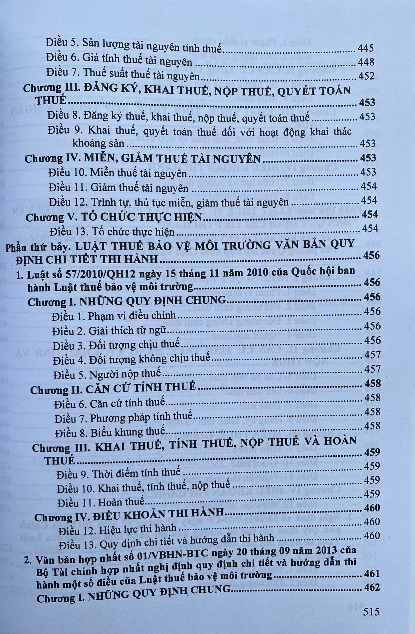 Phần VII. LUẬT THUẾ BẢO VỆ MÔI TRƯỜNG VĂN BẢN QUY ĐỊNH CHI TIẾT THI HÀNH